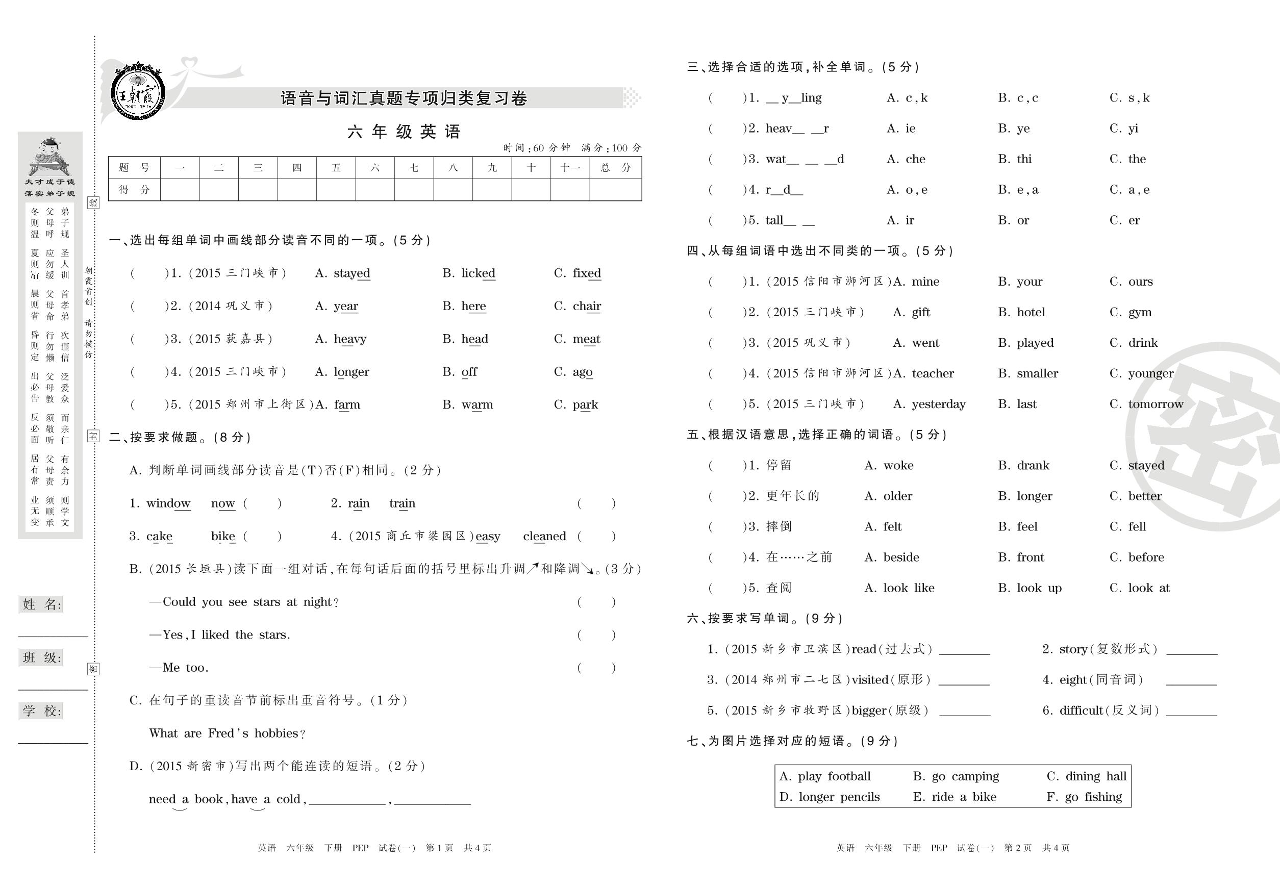 王朝霞期末专项卷六年级下册英语(PEP版)_R210807170620【1】