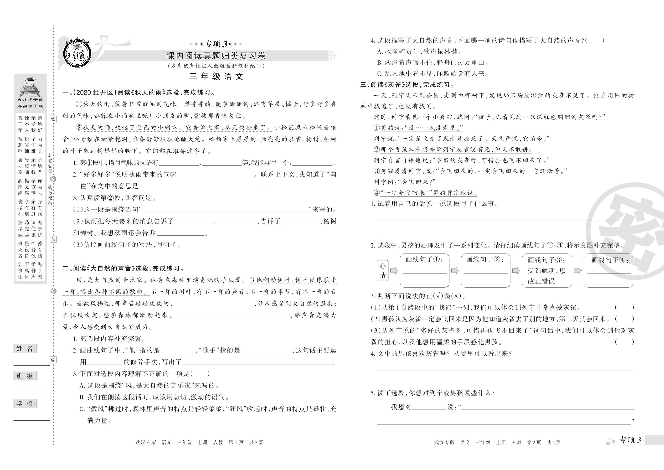 王朝霞期末专项卷——课内阅读、课外阅读真题归类复习三年级上册语文(人教版)_R211019163152039【0】