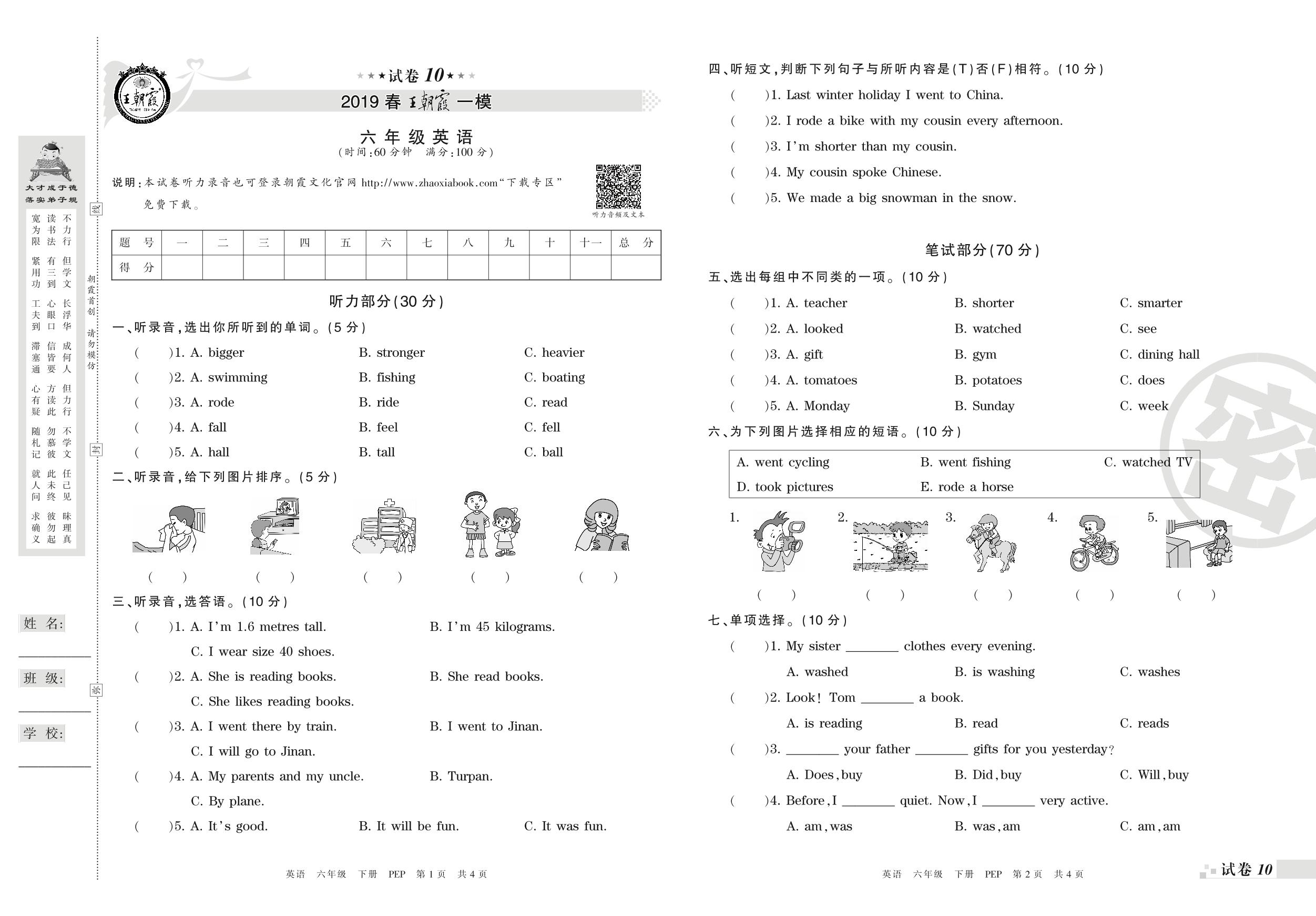 王朝霞期末模拟卷六年级下册英语(PEP版)_R210807170816【10】
