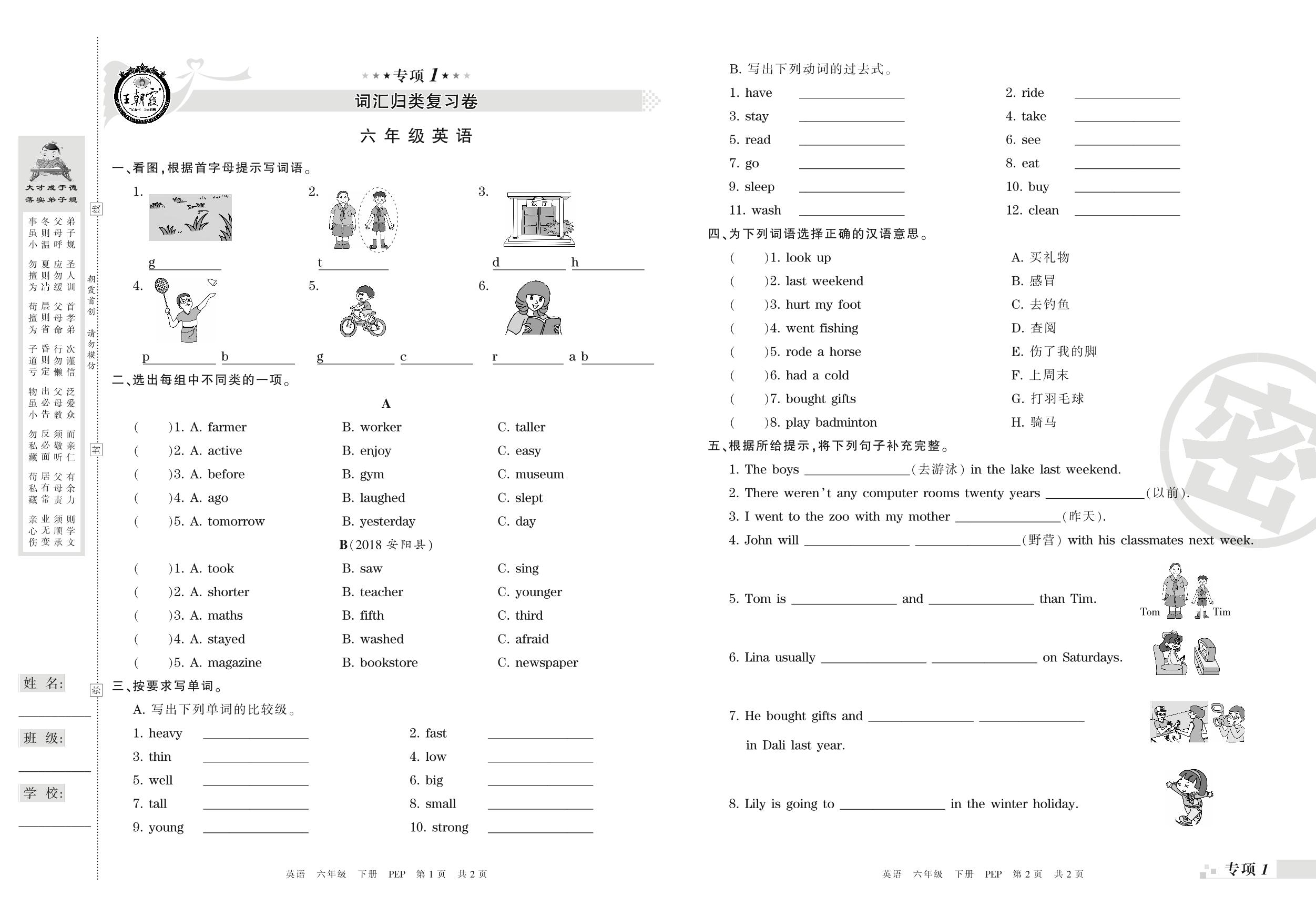 王朝霞期末专项卷——词汇、句子真题归类复习卷六年级下册英语(PEP版)_R210807170837【0】