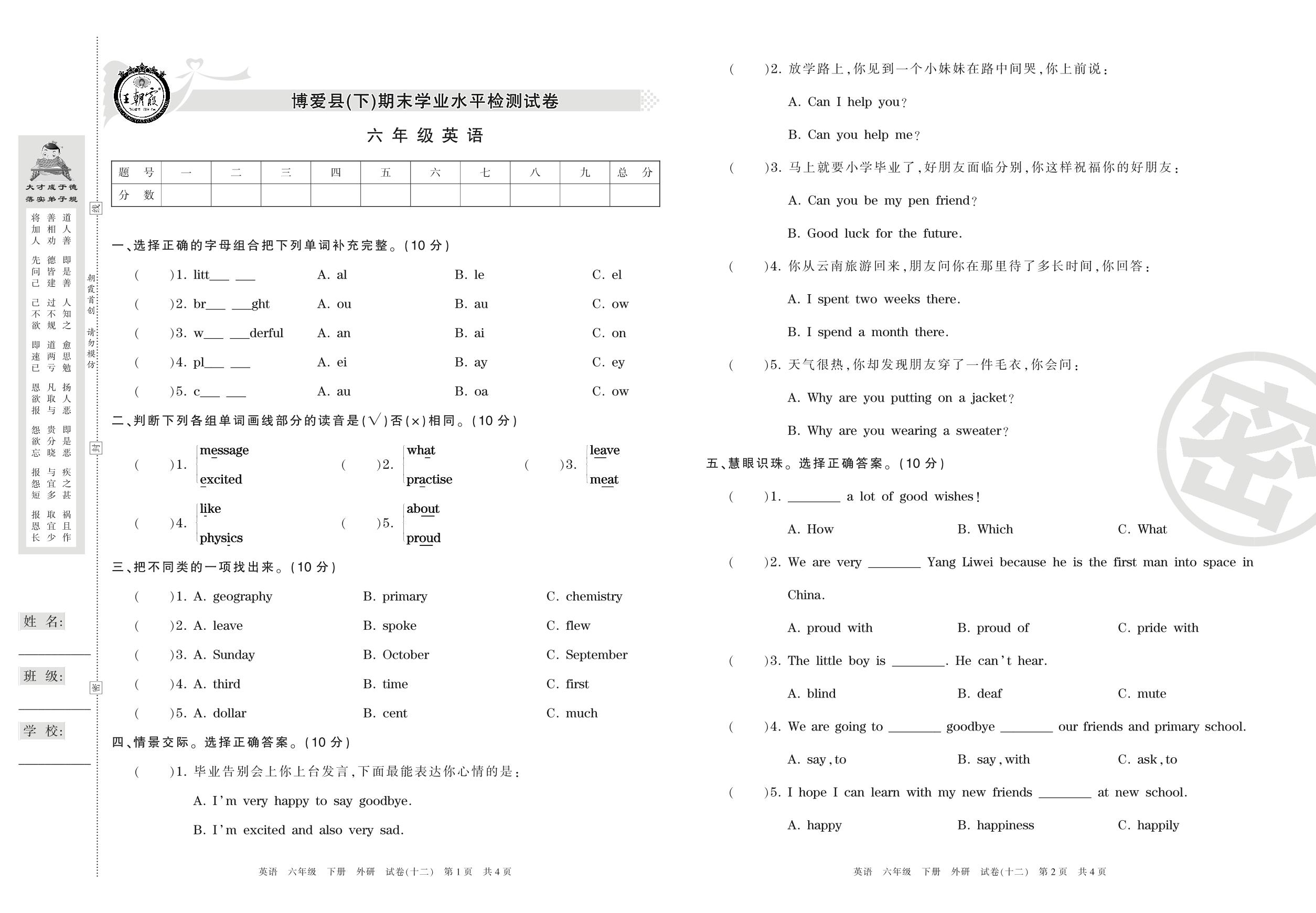 2015-2016学年第二学期焦作市博爱县六年级英语试卷(外研版)【12】