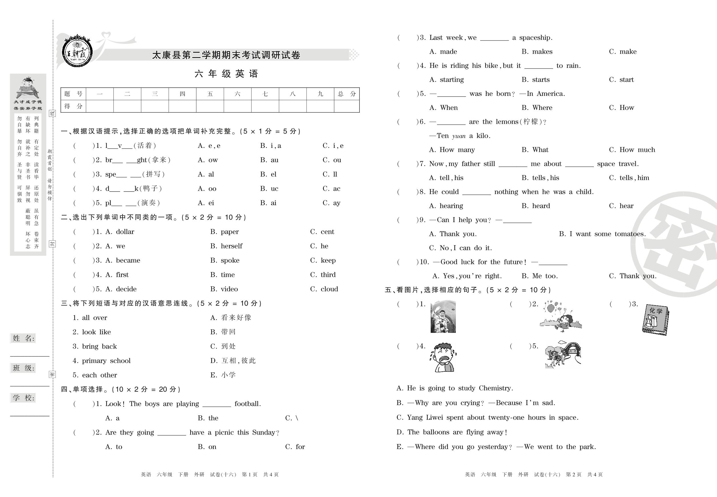 2015-2016学年第二学期周口市太康县六年级英语试卷(外研版)【16】