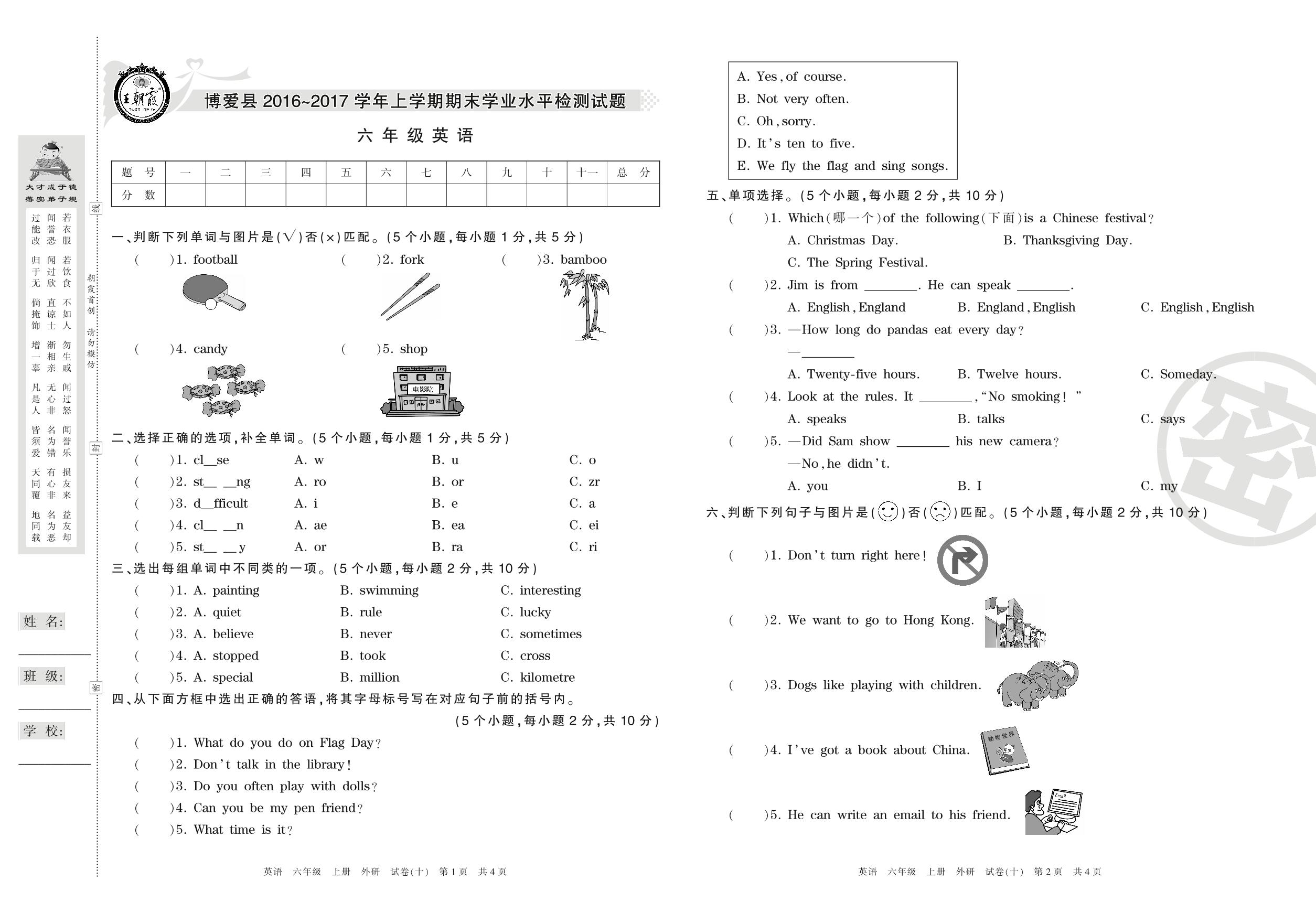 2016-2017学年第一学期焦作市博爱县六年级英语试卷(外研版)【10】