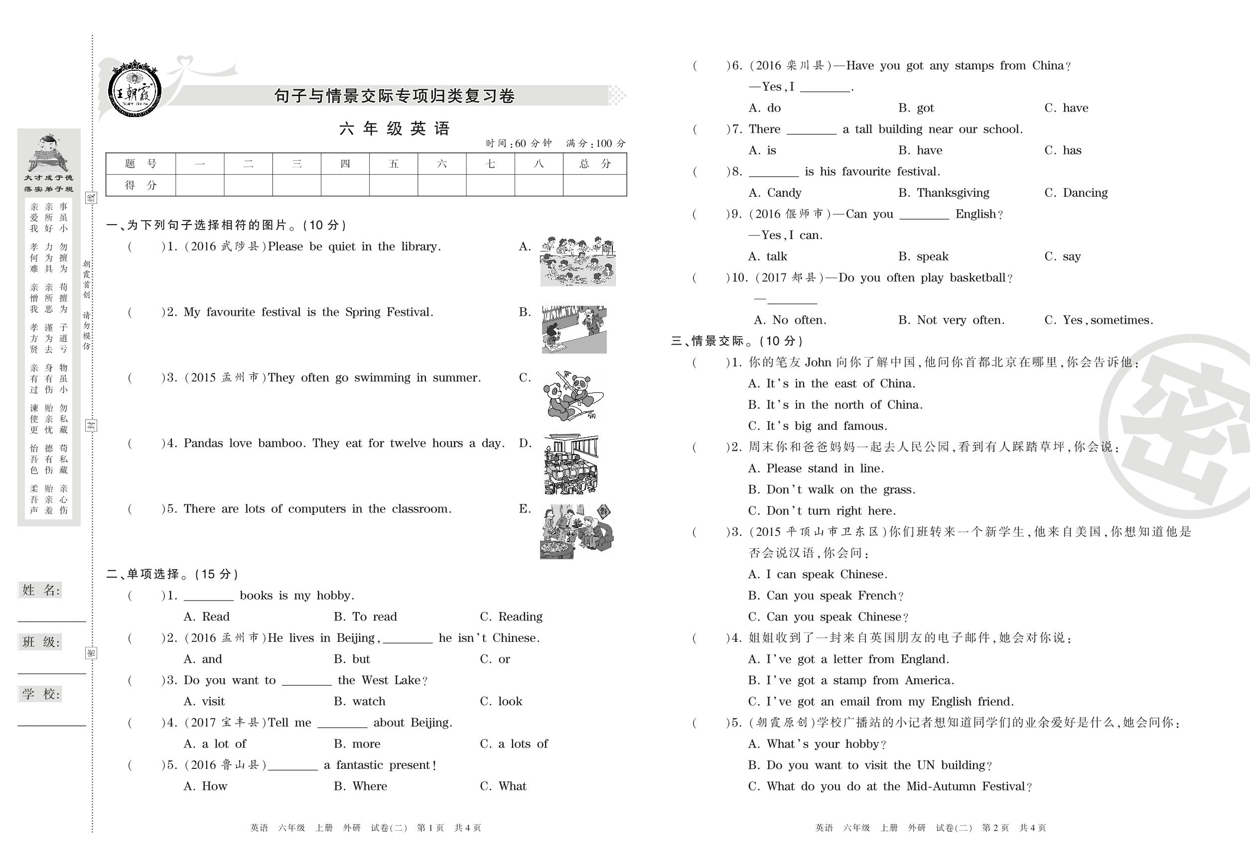 王朝霞期末专项卷六年级上册英语(外研版)【2】