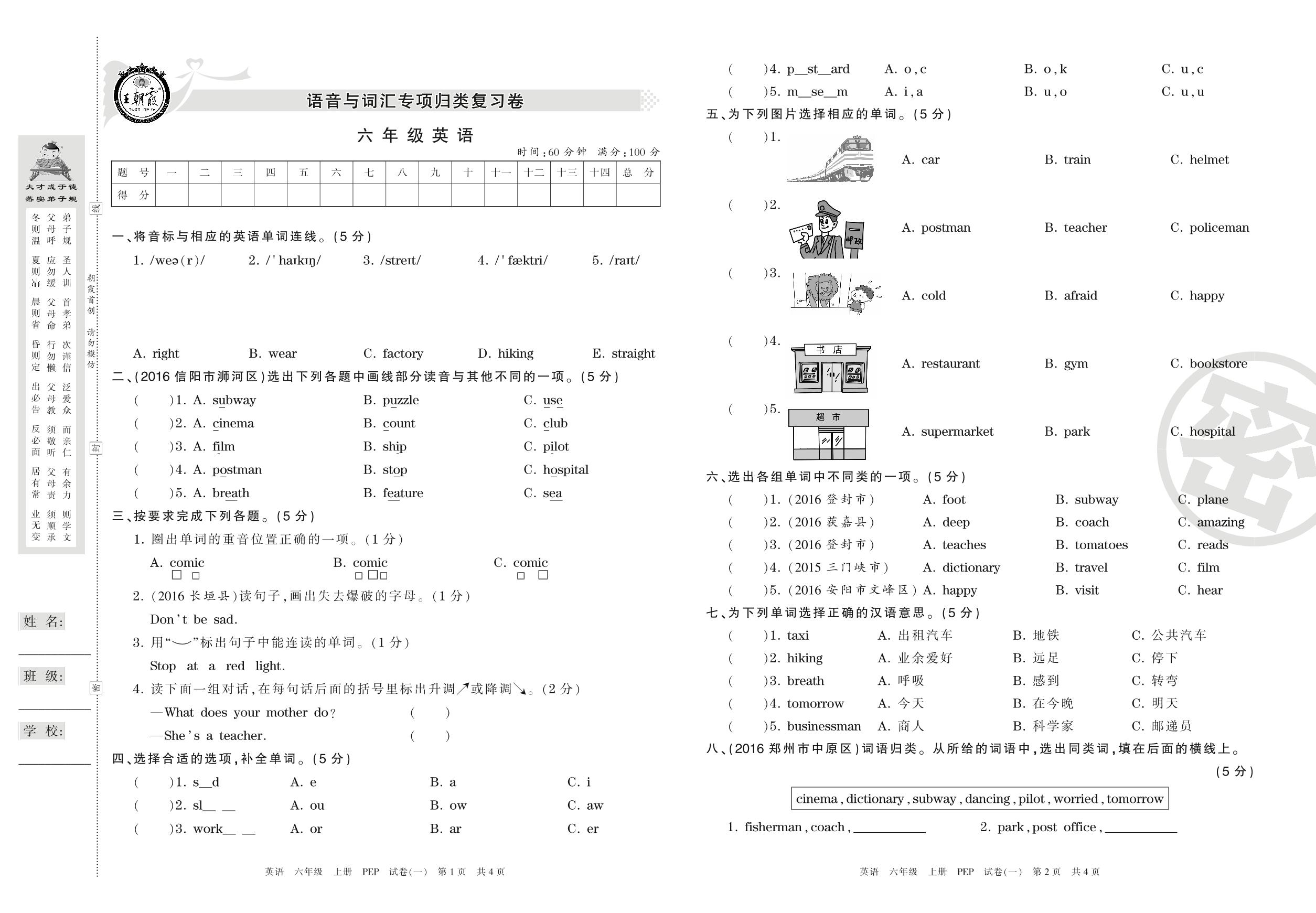王朝霞期末专项卷六年级上册英语(PEP版)_R210807171308【1】