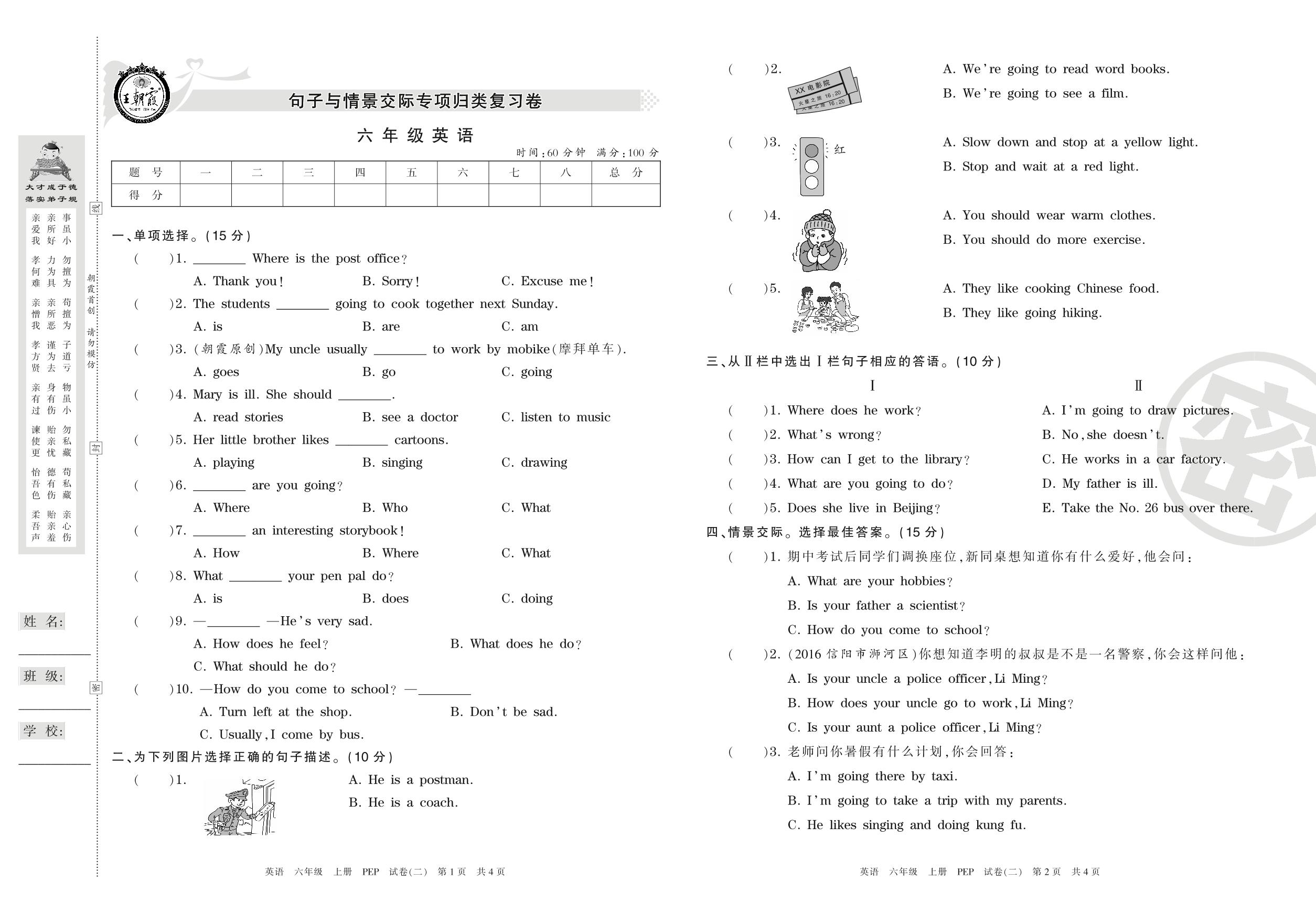 王朝霞期末专项卷六年级上册英语(PEP版)_R210807171422【2】
