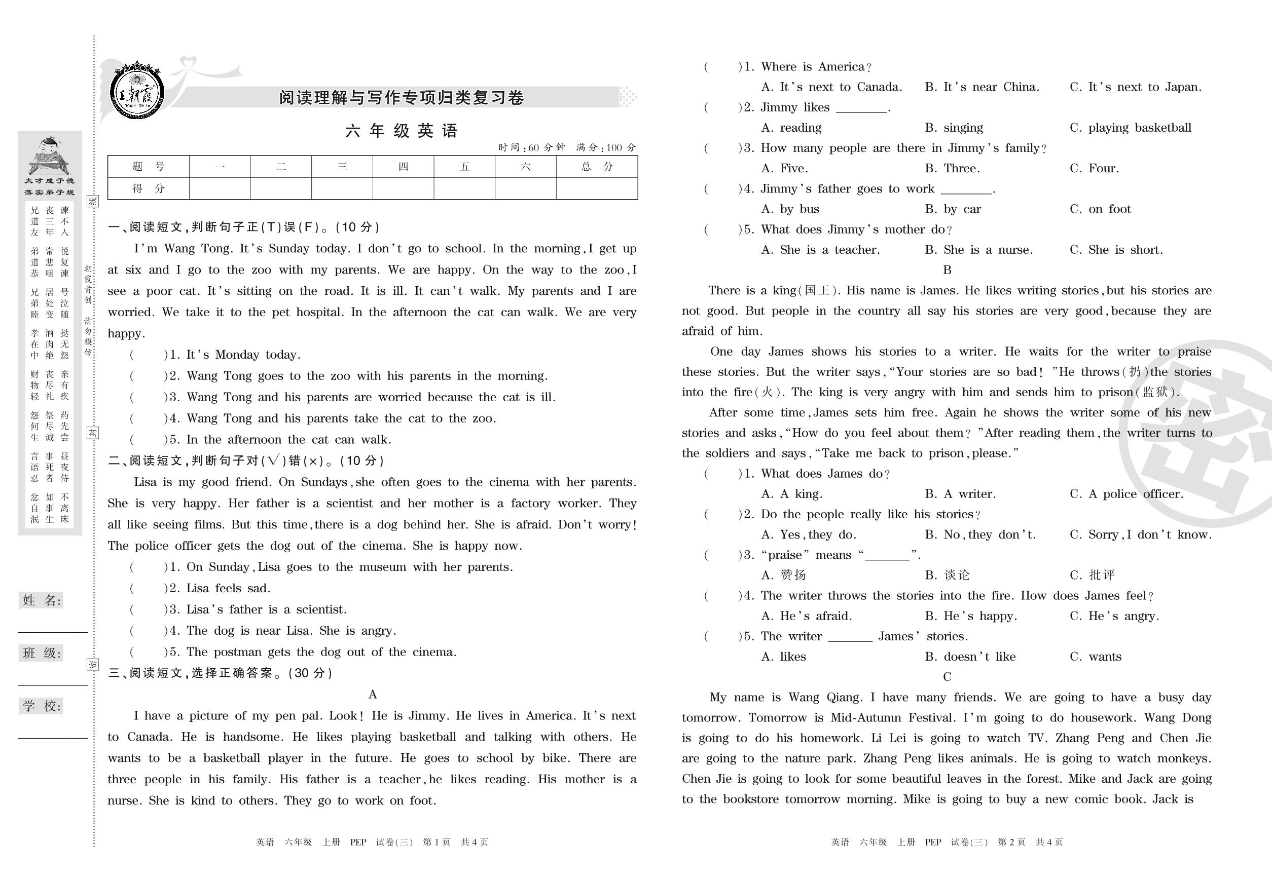 王朝霞期末专项卷六年级上册英语(PEP版)_R210807171424【3】