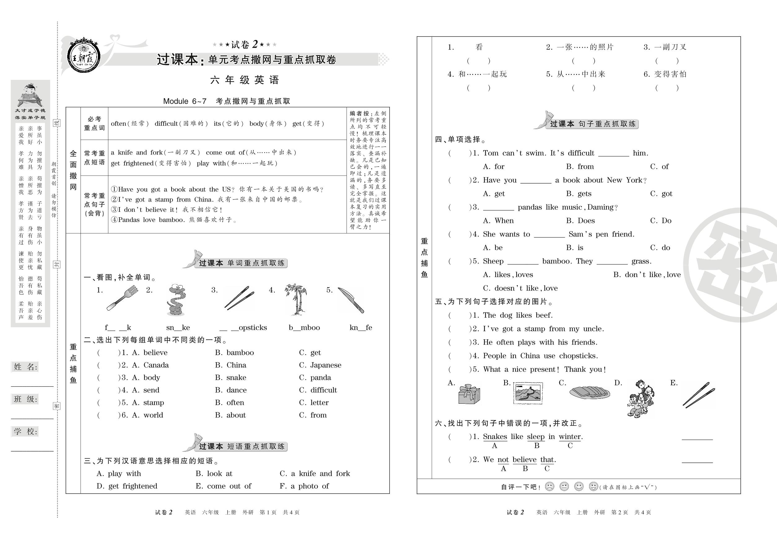 王朝霞期末过课本六年级上册英语(外研版)【2】