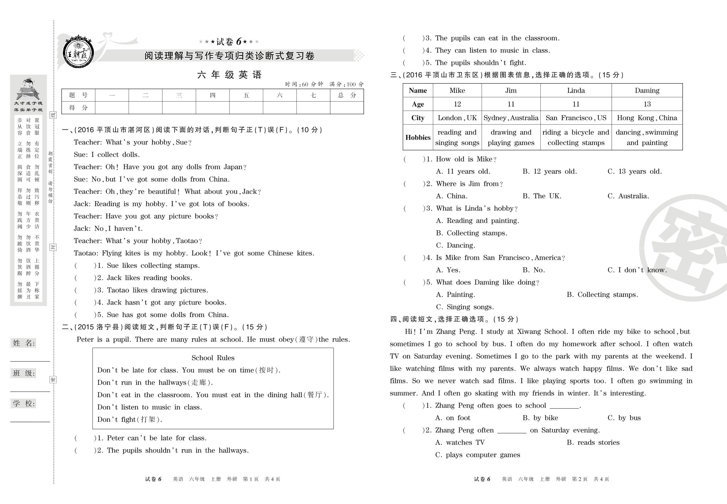 王朝霞期末专项卷六年级上册英语(外研版)【6】