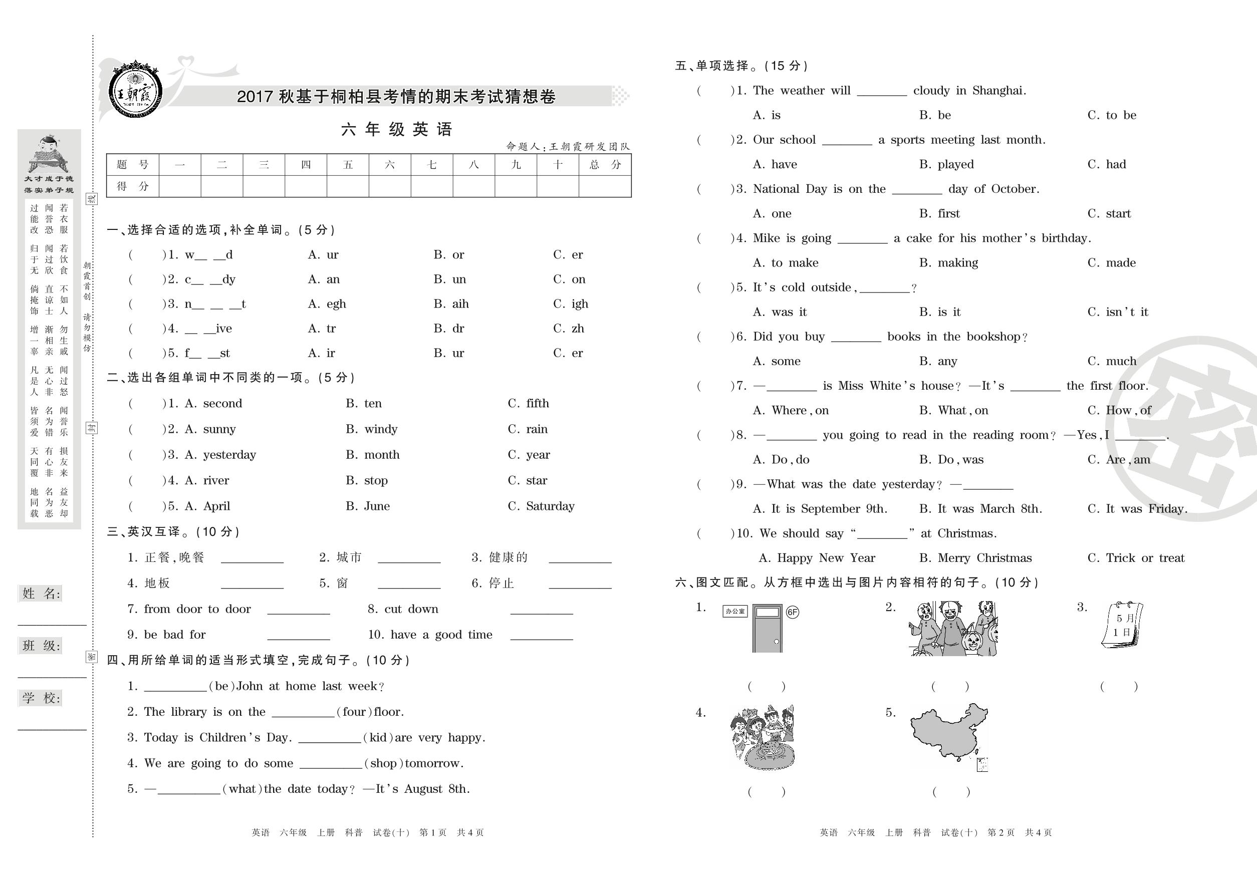 2016-2017学年第一学期南阳市桐柏县六年级英语试卷(科普版)【10】