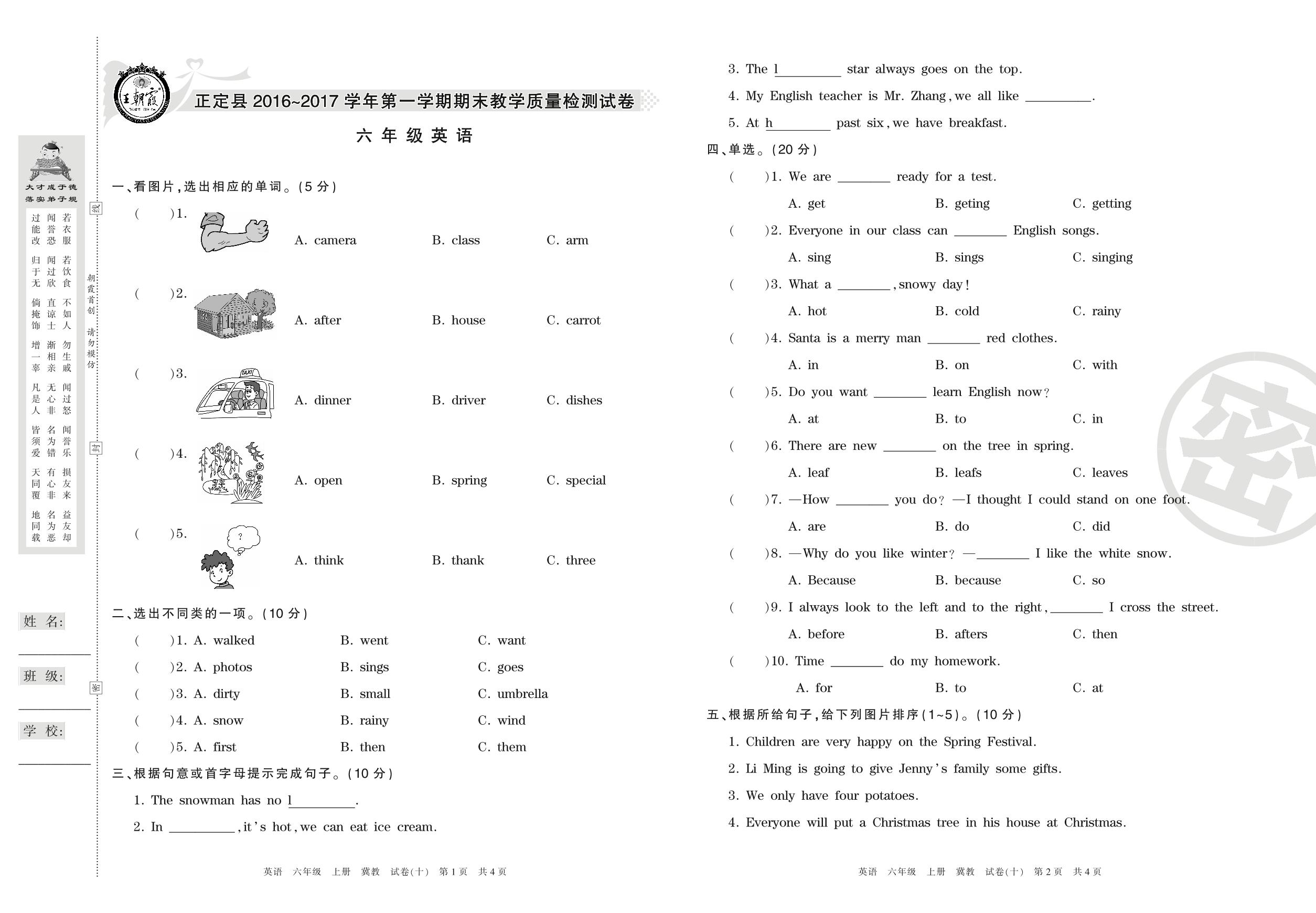 2016-2017学年第一学期石家庄市正定县六年级英语试卷(冀教版)【10】