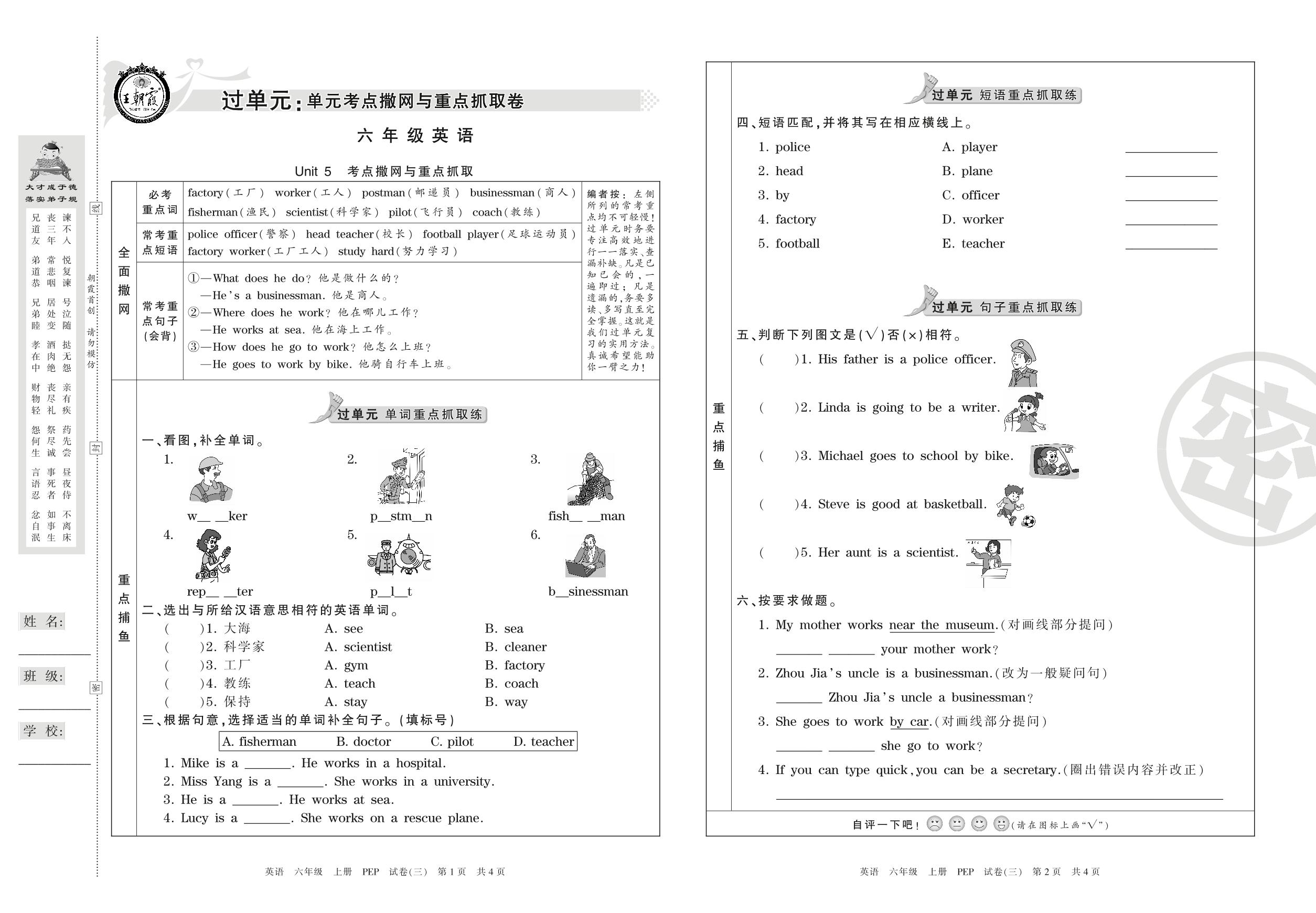 王朝霞期末过单元六年级上册英语(PEP版)【3】
