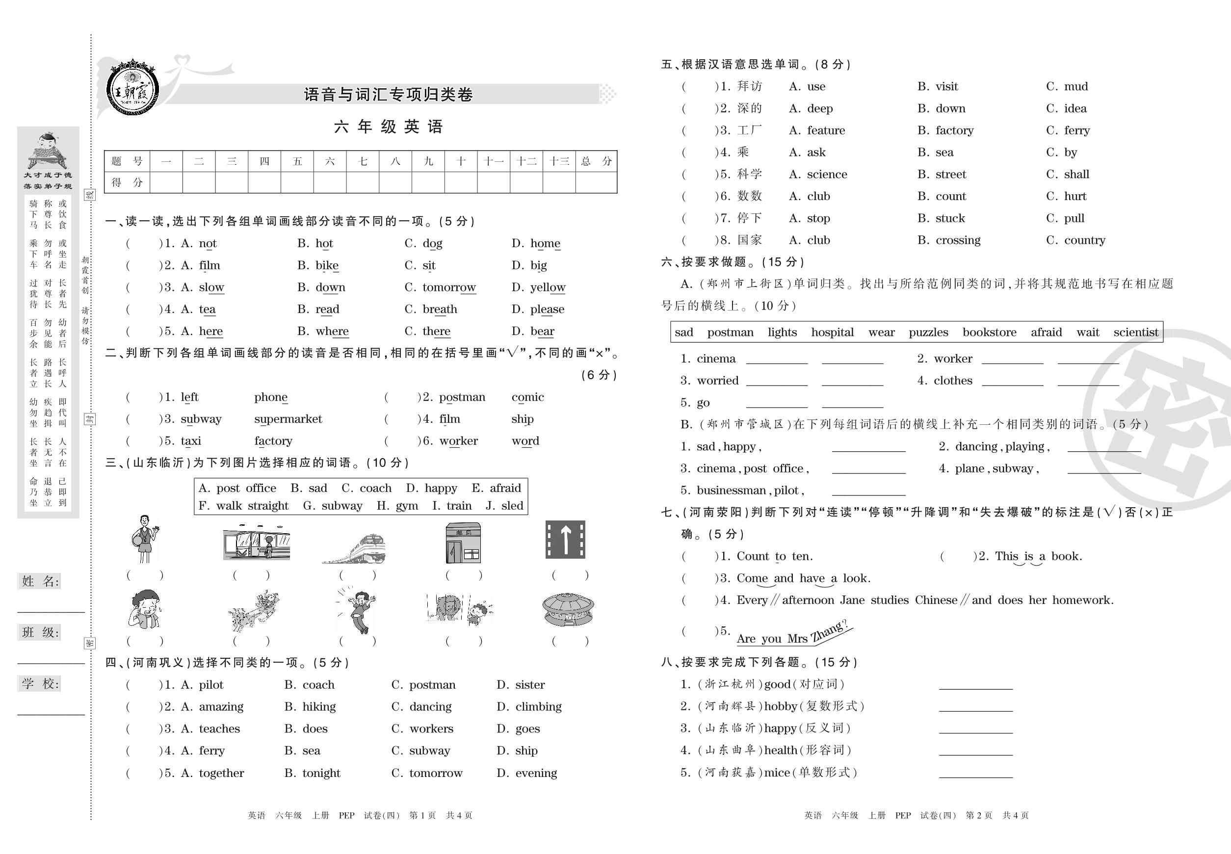 王朝霞期末专项卷六年级上册英语(PEP版)_R210807171815【4】