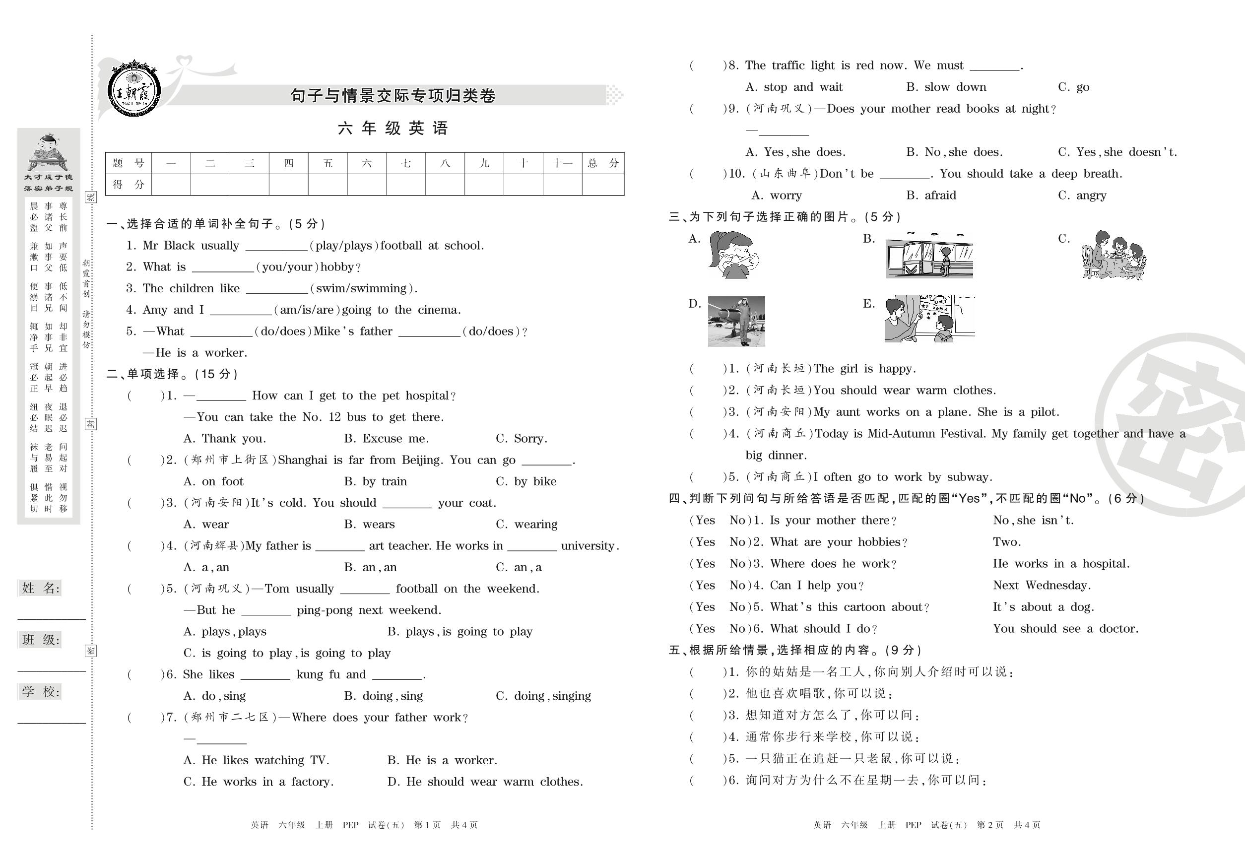 王朝霞期末专项卷六年级上册英语(PEP版)【5】
