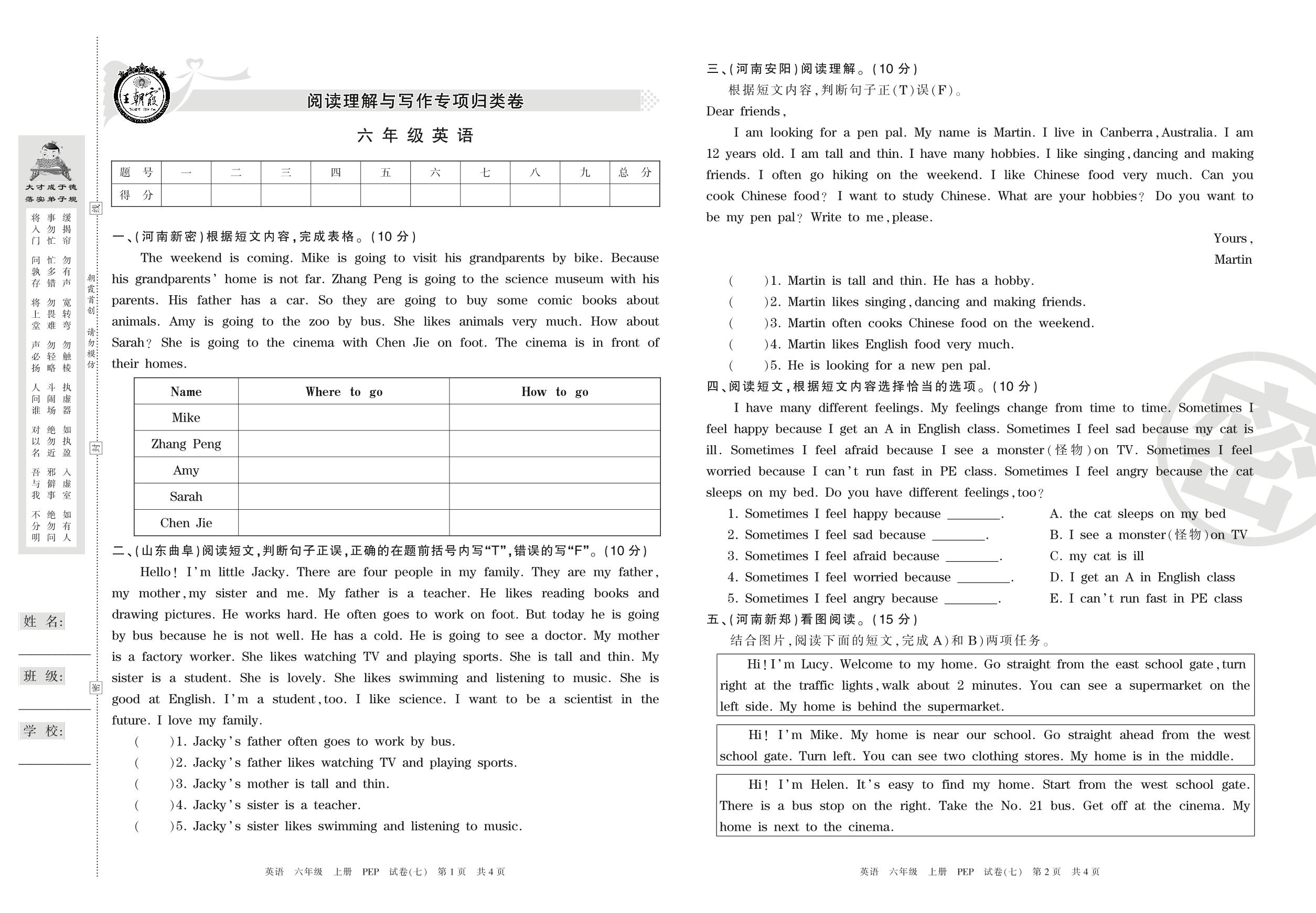 王朝霞期末专项卷六年级上册英语(PEP版)【7】
