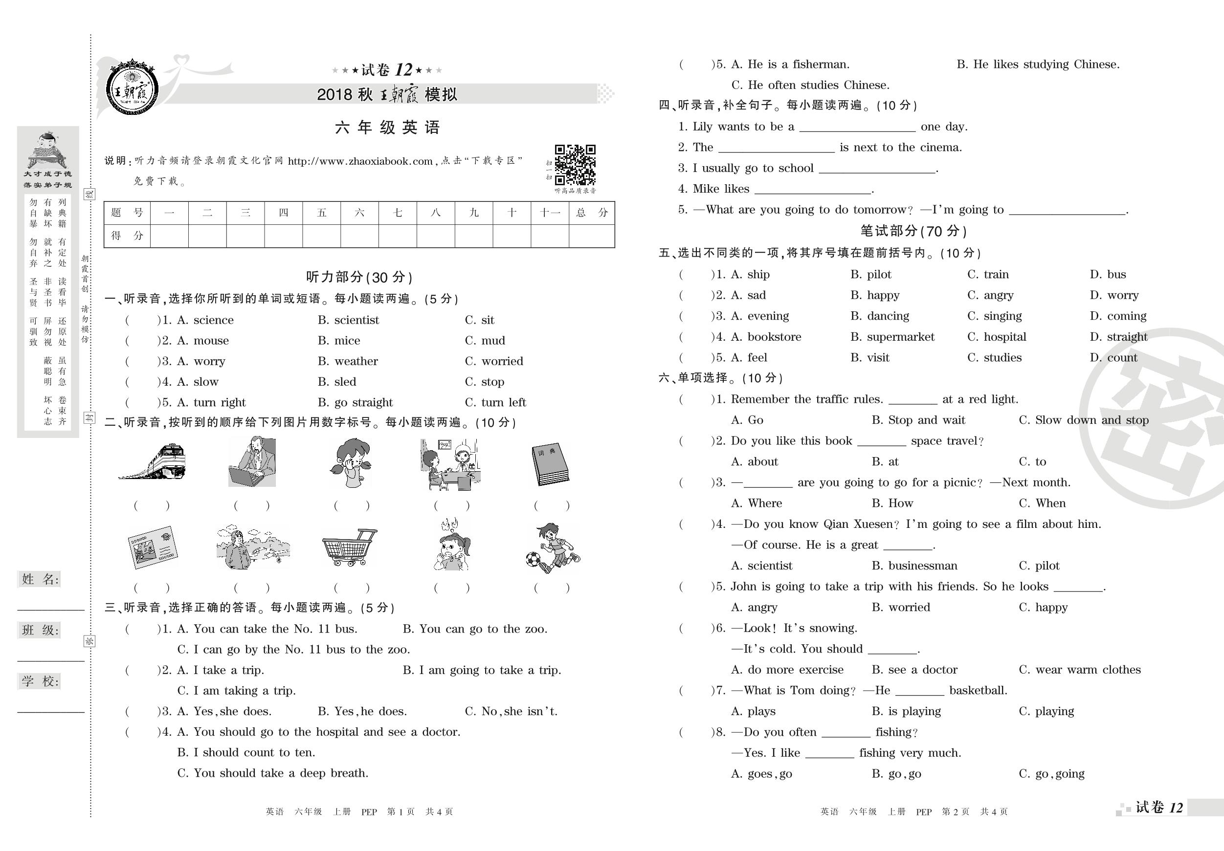王朝霞期末模拟六年级上册英语(PEP版)【12】