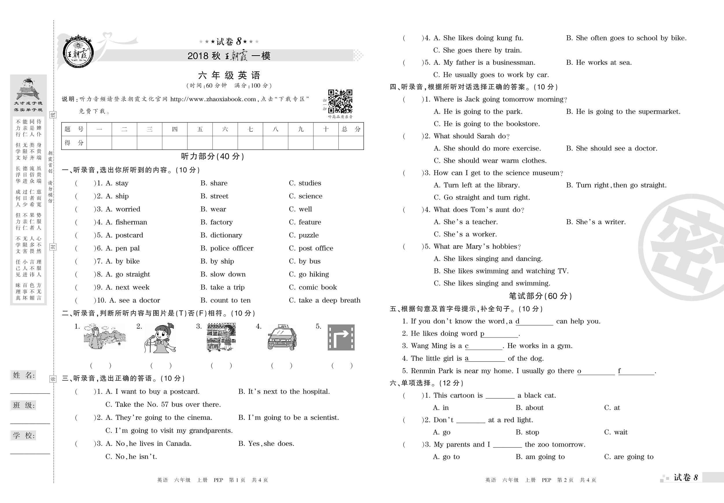 王朝霞期末模拟卷六年级上册英语(PEP版)_R210807172135【8】