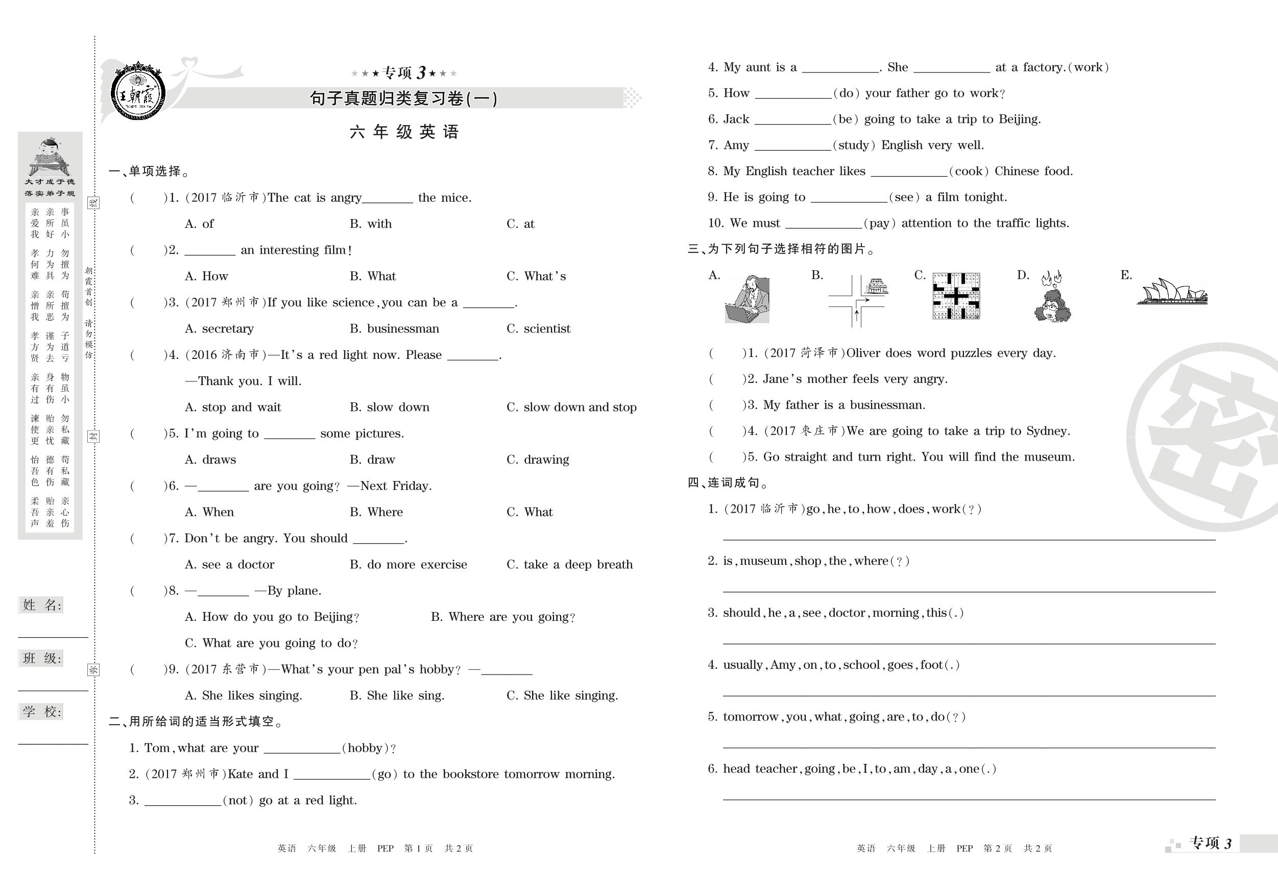 王朝霞期末专项卷——句子真题归类复习六年级上册英语(PEP版)_R210807172153【0】