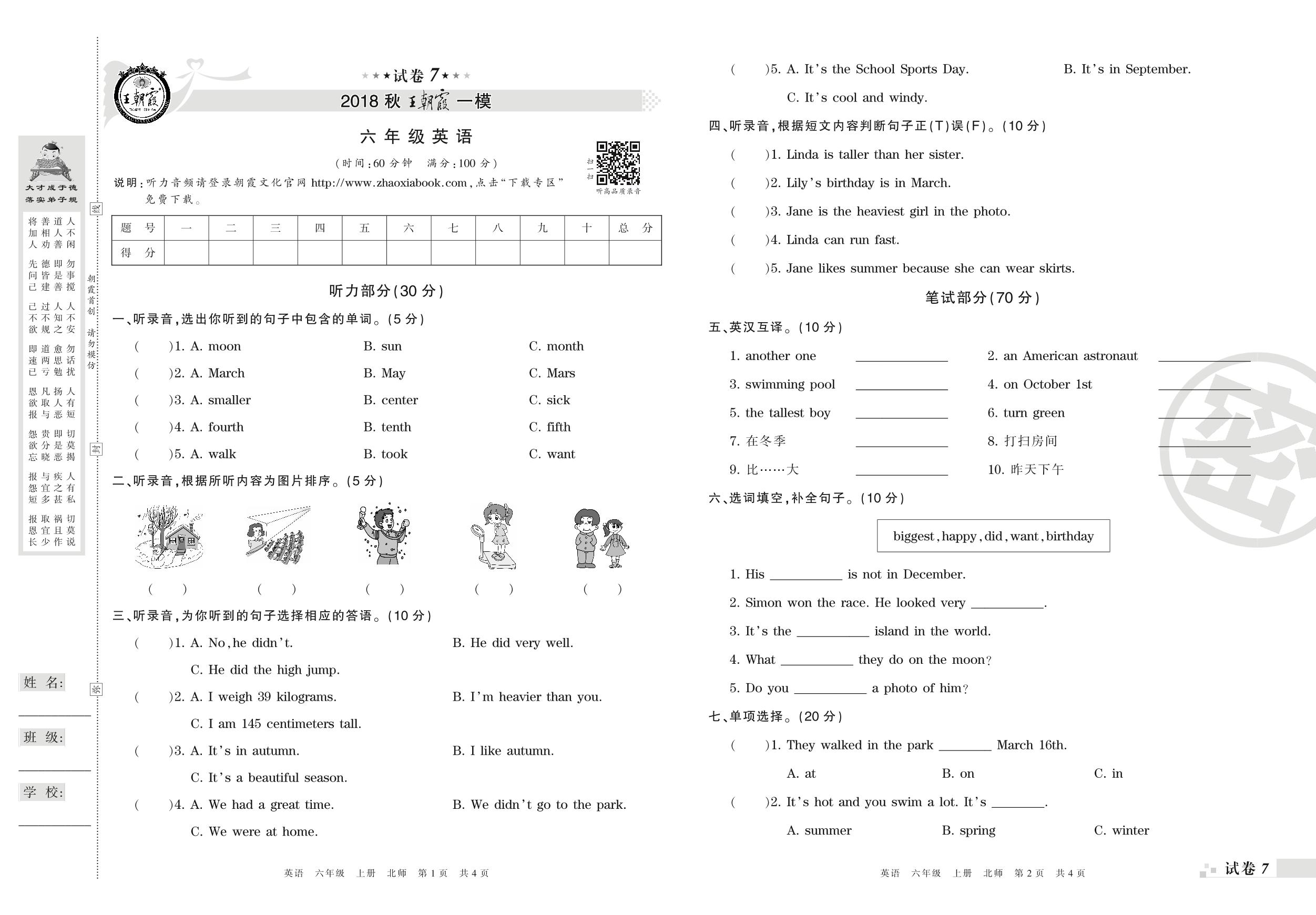 王朝霞期末模拟卷六年级上册英语(北师版)_R210807172317【7】