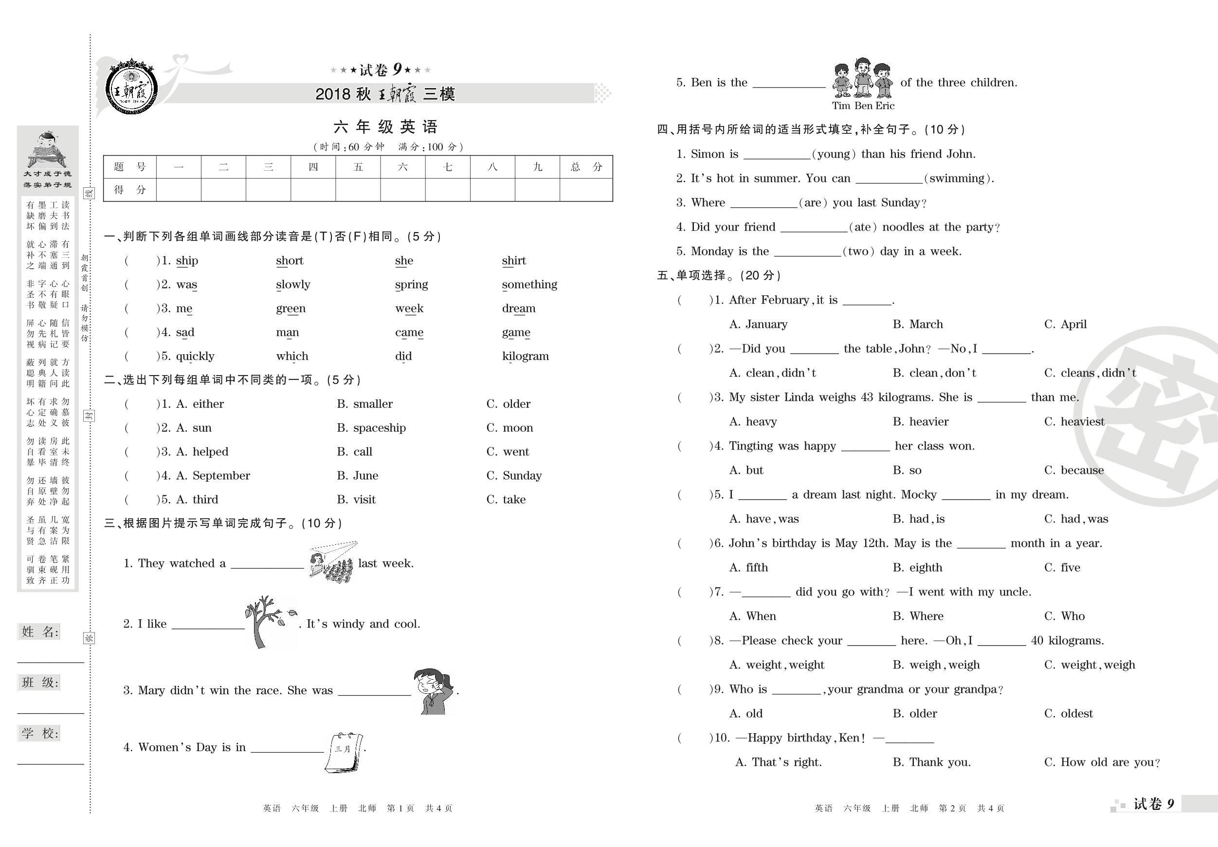 王朝霞期末模拟卷六年级上册英语(北师版)_R210807172322【9】