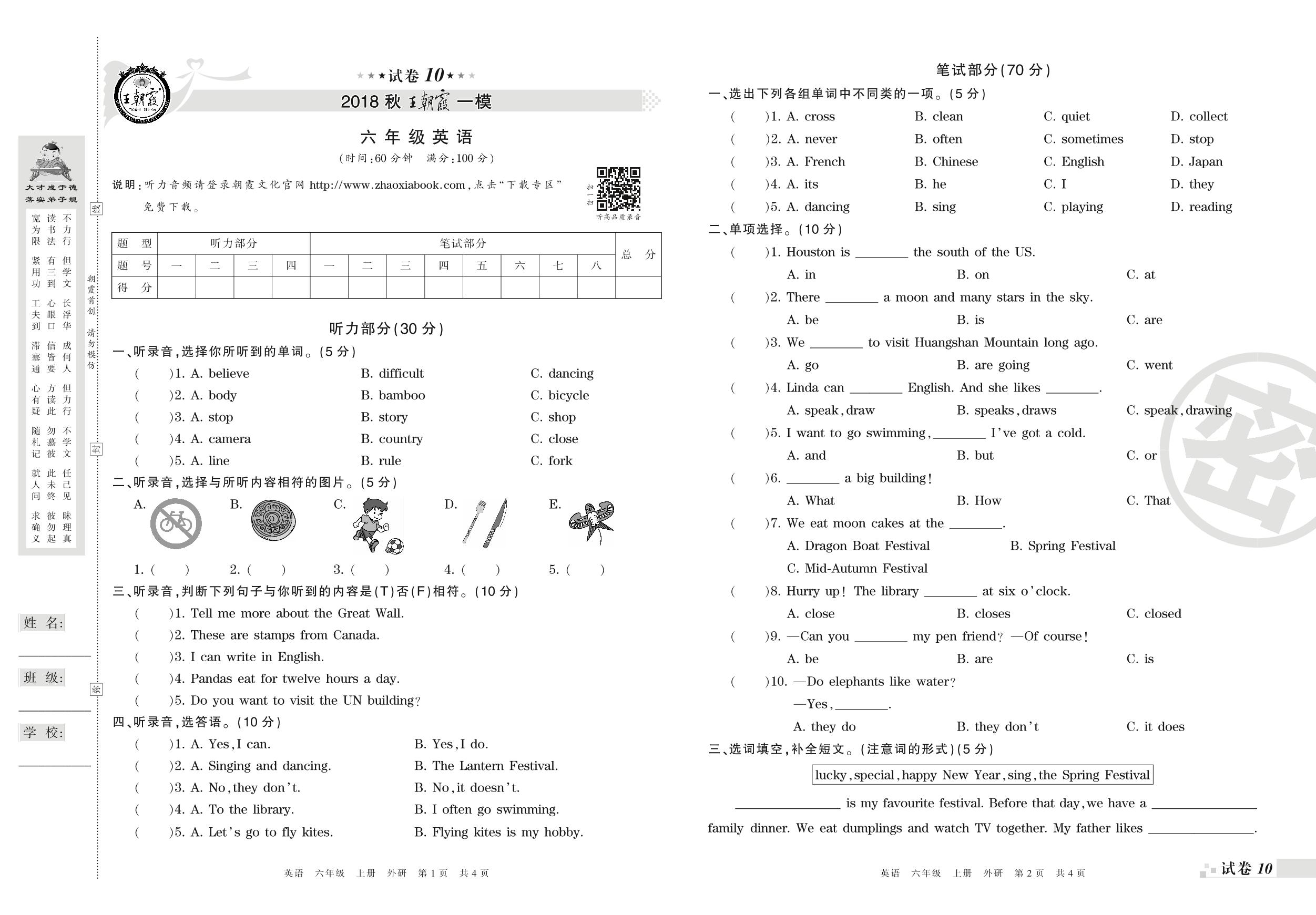 王朝霞期末模拟卷六年级上册英语(外研版)_R210807172456【10】
