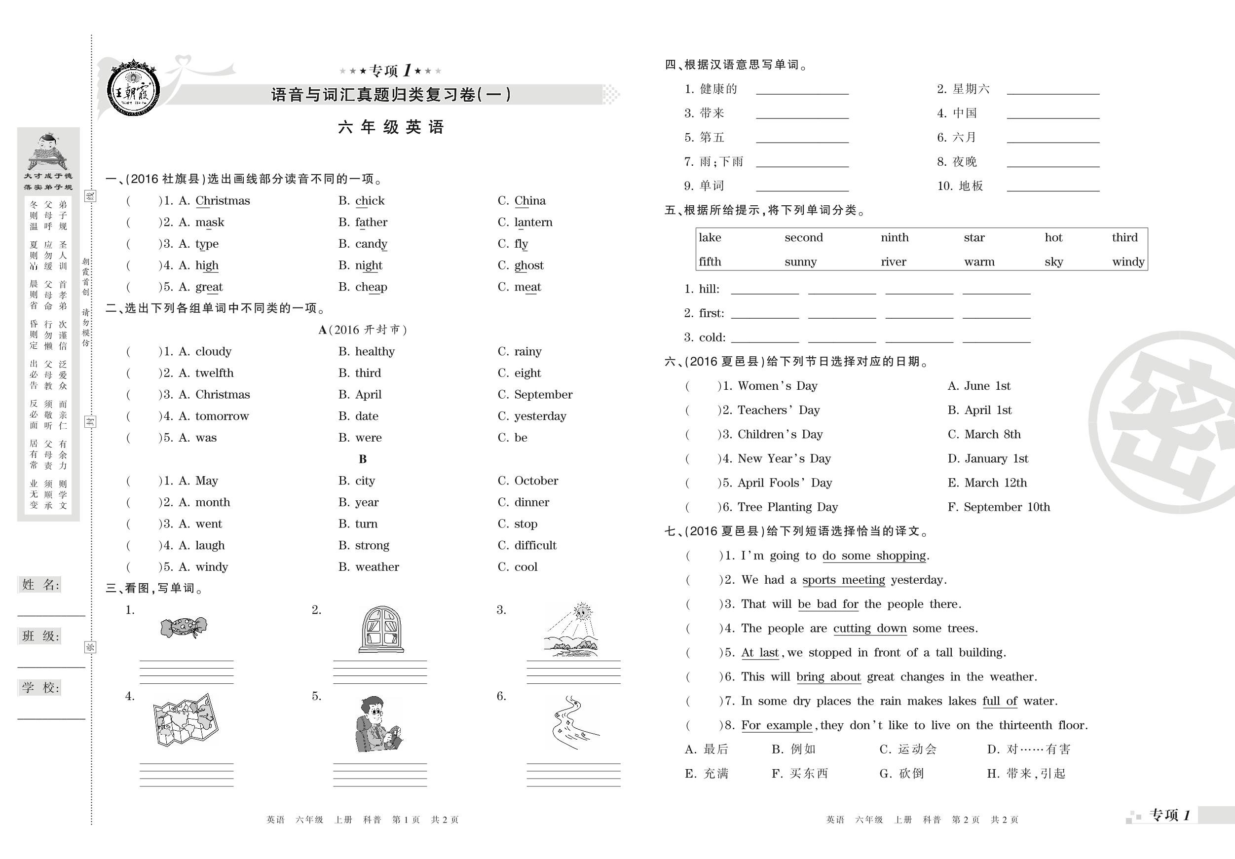 王朝霞期末专项卷——语音与词汇真题归类复习六年级上册英语(科普版)_R210807172512【0】
