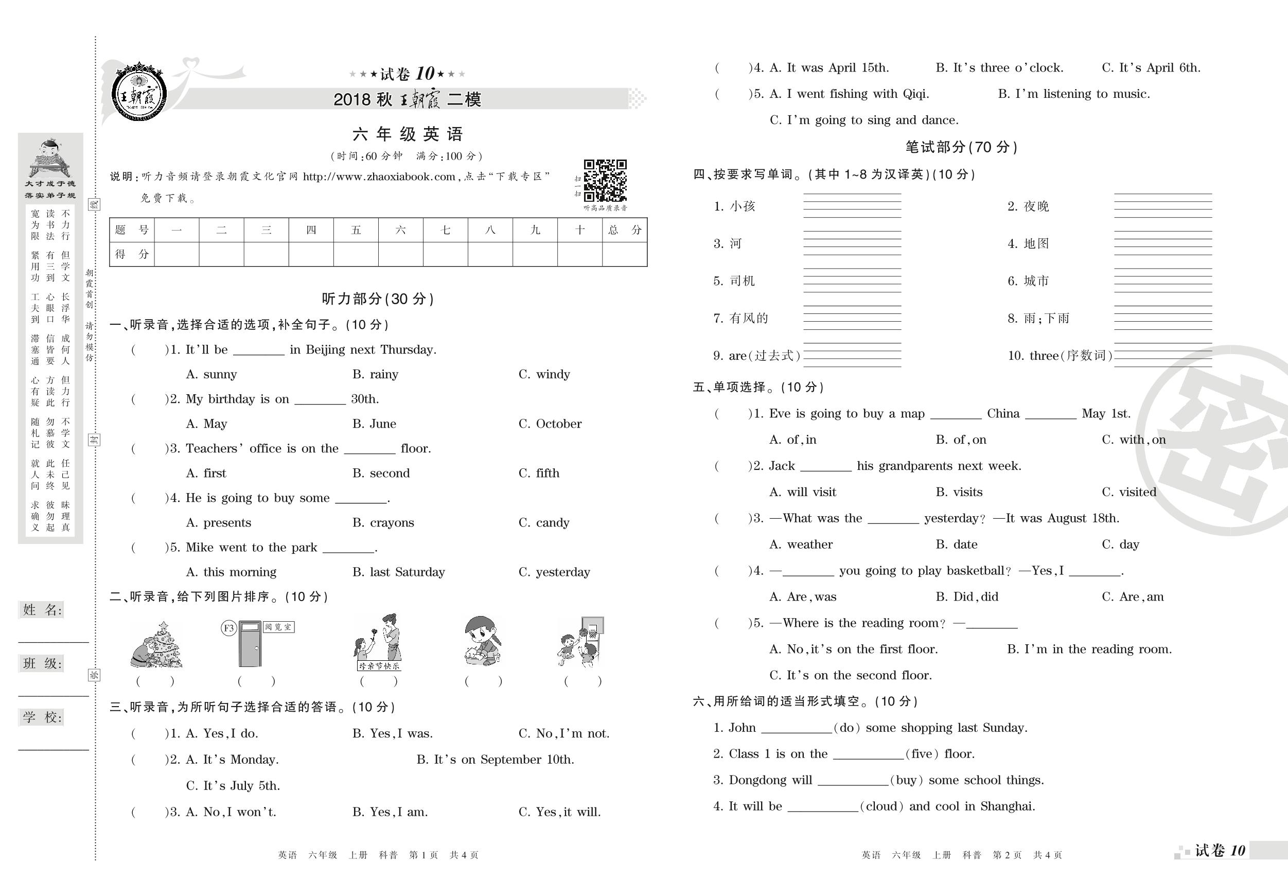 王朝霞期末模拟卷六年级上册英语(科普版)_R210807172555【10】