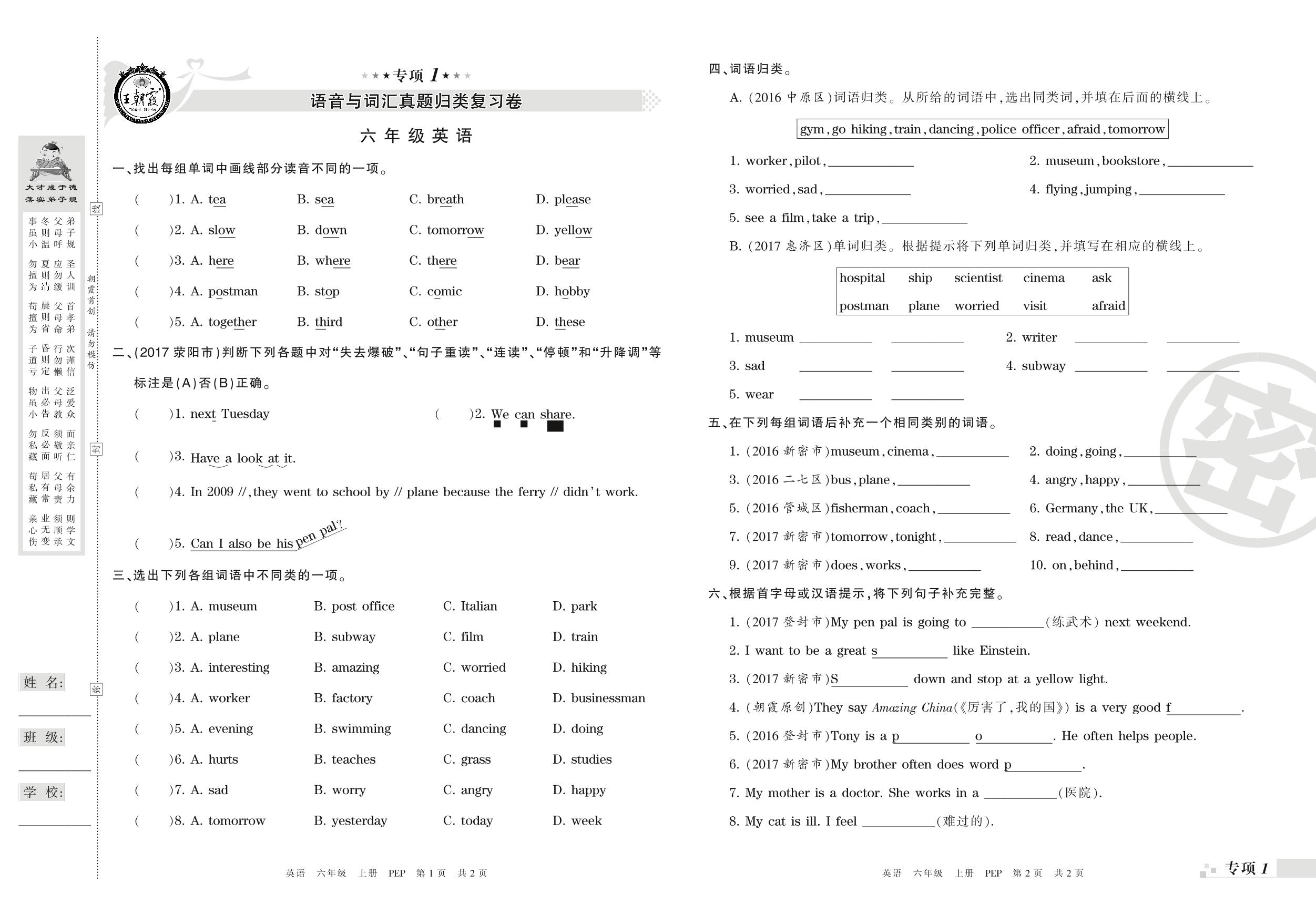 王朝霞期末专项卷——语音与词汇、句子六年级上册英语(PEP版)_R210807172610【0】