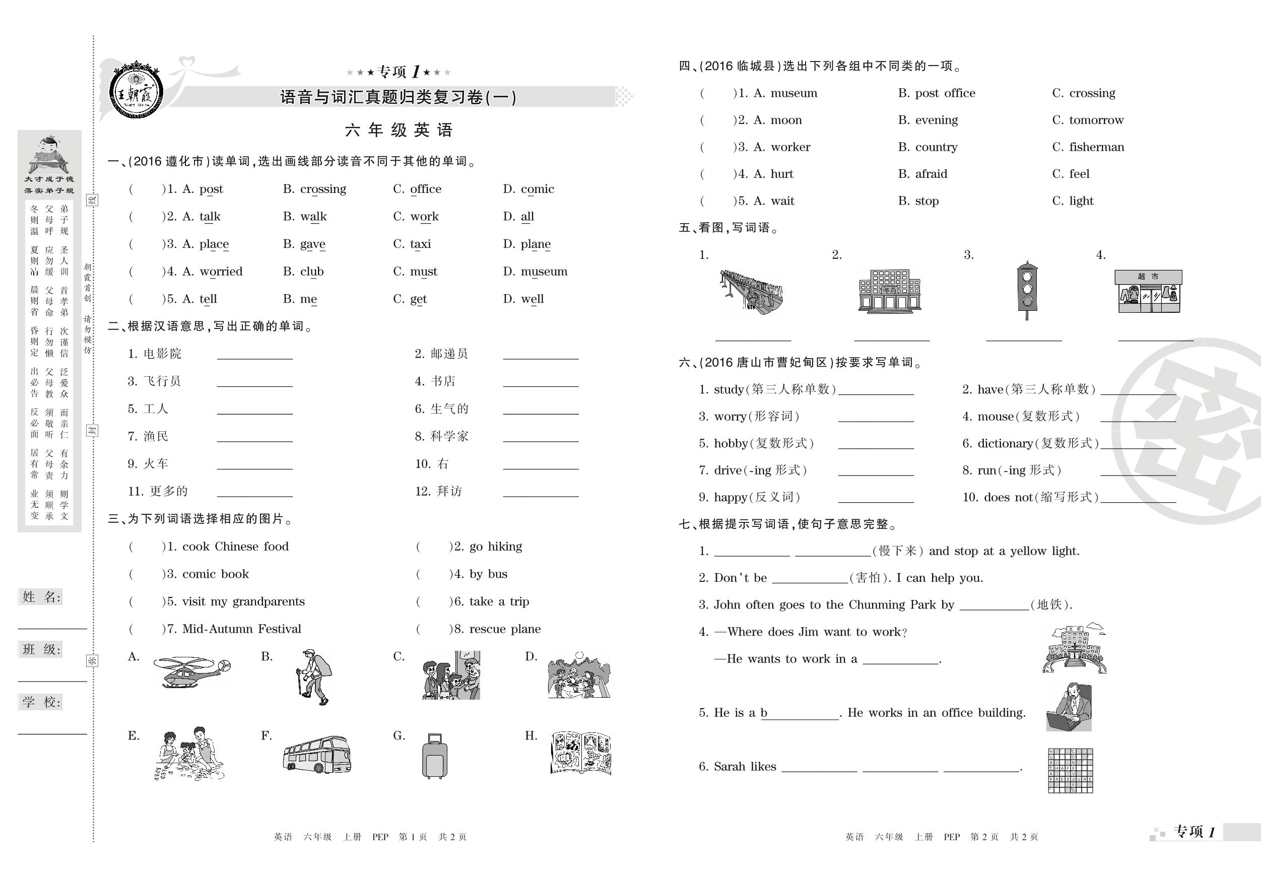 王朝霞期末专项卷——语音与词汇真题归类复习六年级上册英语(PEP版)_R210807172722【0】