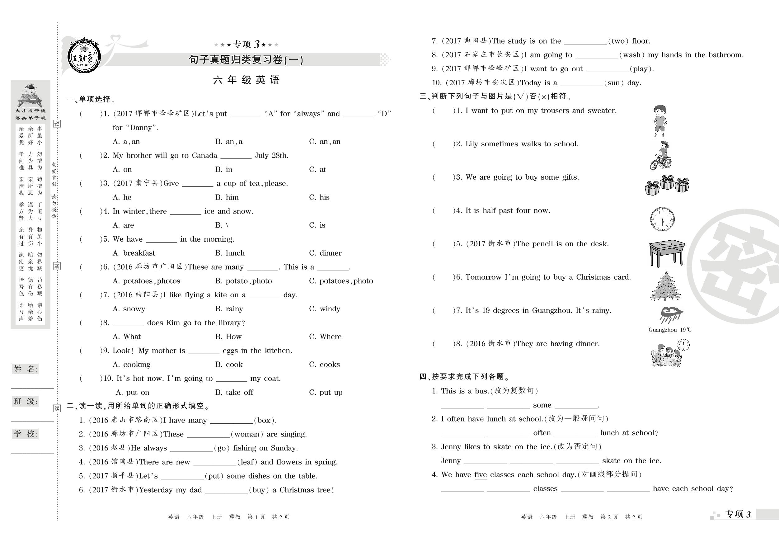 王朝霞期末专项卷——句子真题归类复习六年级上册英语(冀教版)_R210807172852【0】
