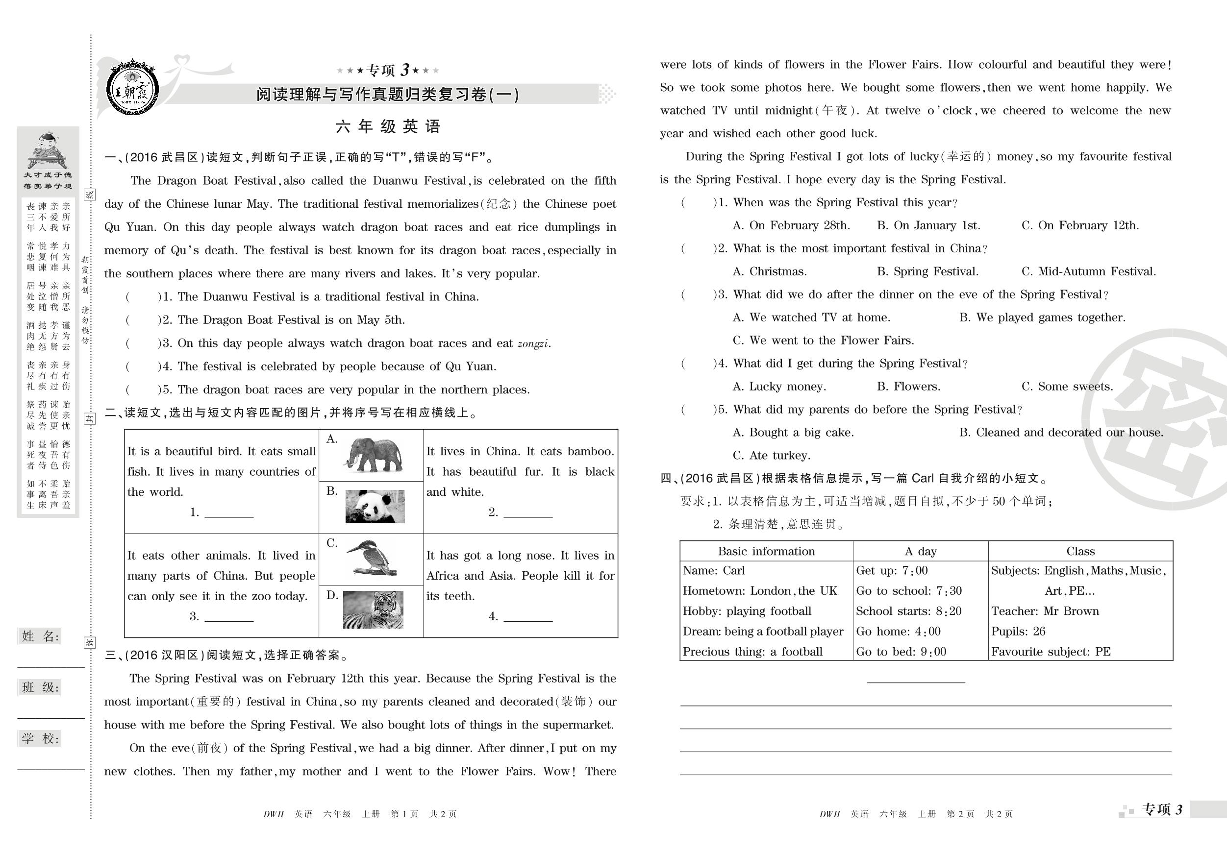 王朝霞期末专项卷——阅读理解与写作真题归类复习六年级上册英语(剑桥版)_R210807172955【0】