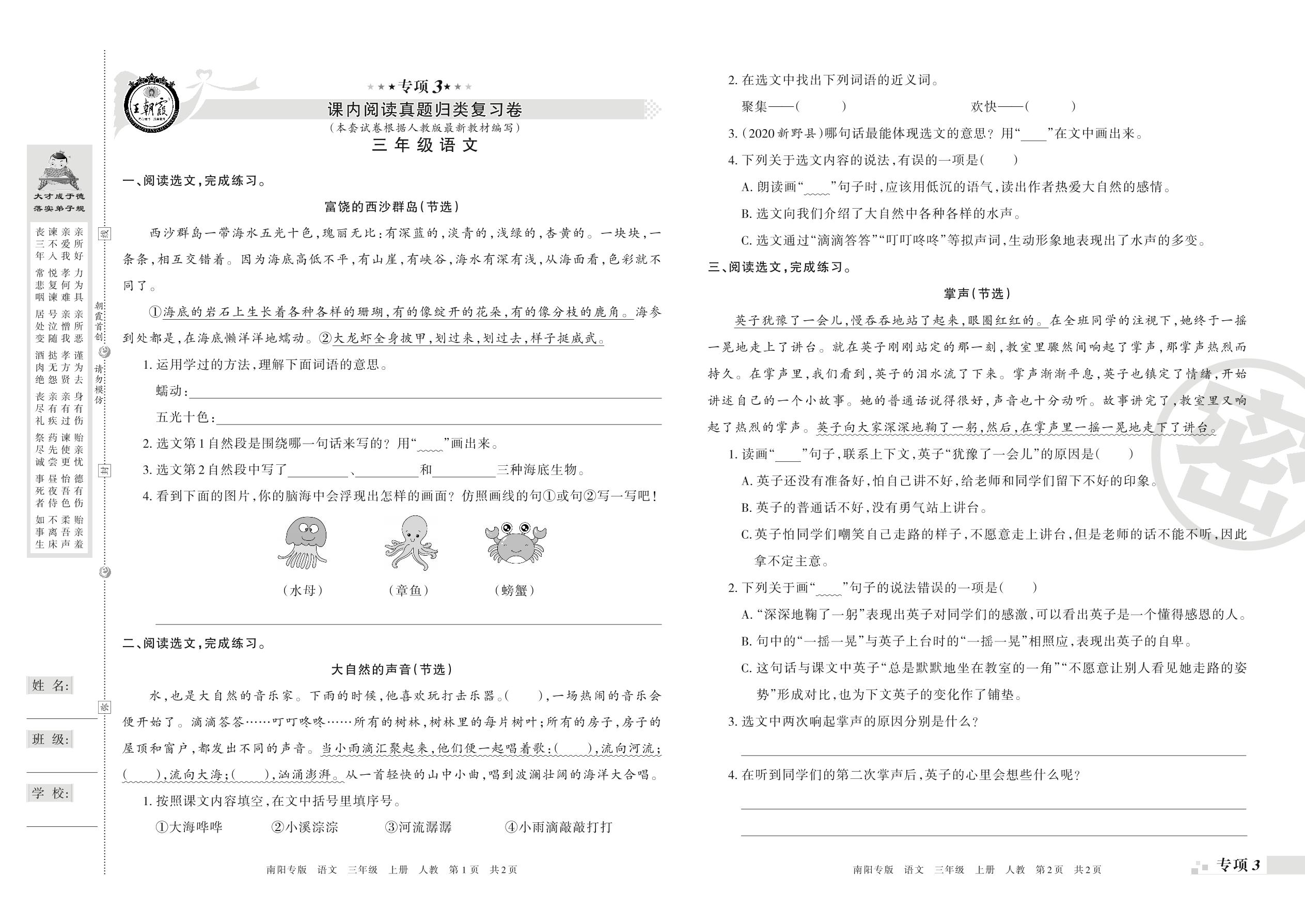 王朝霞期末专项卷——课内阅读、课外阅读真题归类复习三年级上册语文(人教版)_R21080184820【0】