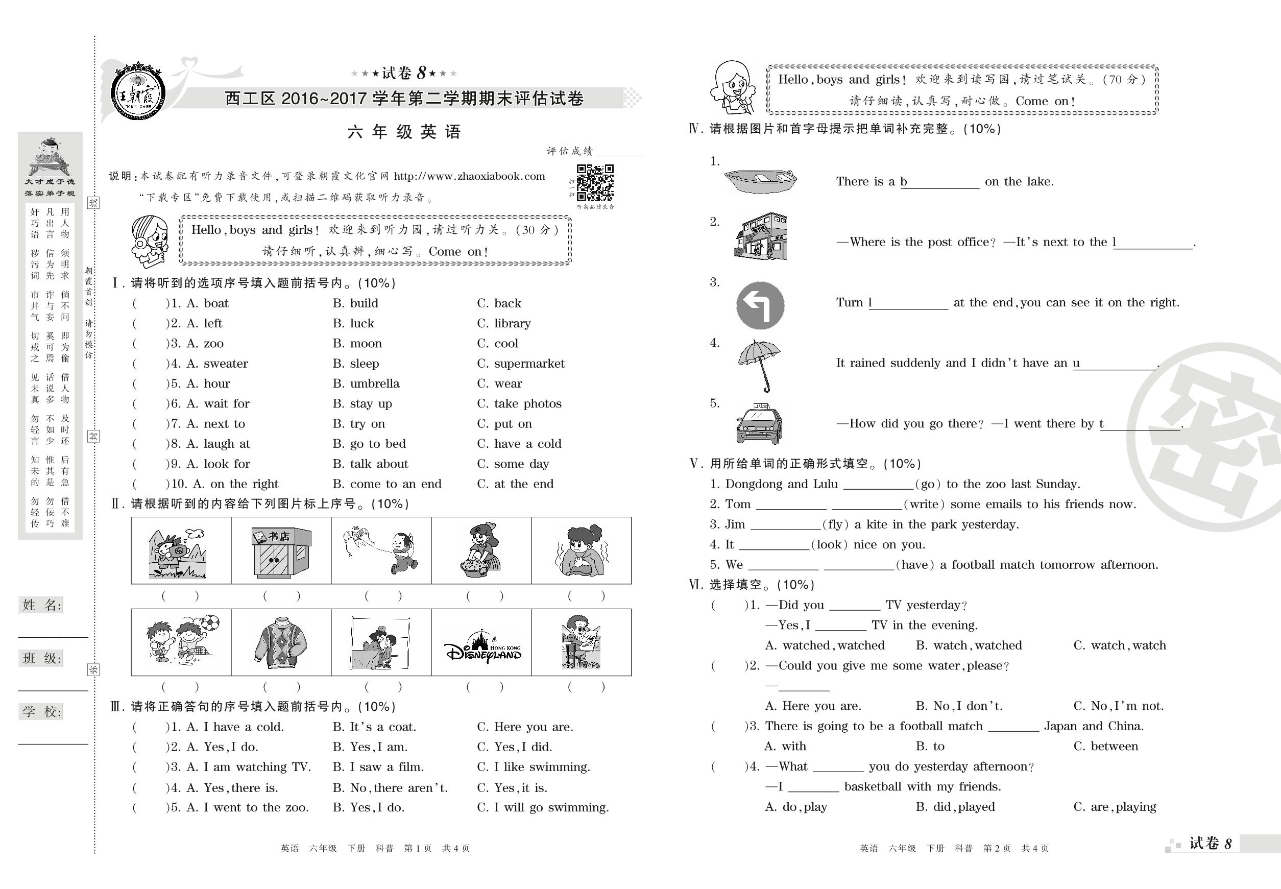 2016-2017学年第二学期洛阳市西工区六年级英语试卷(科普版)【8】