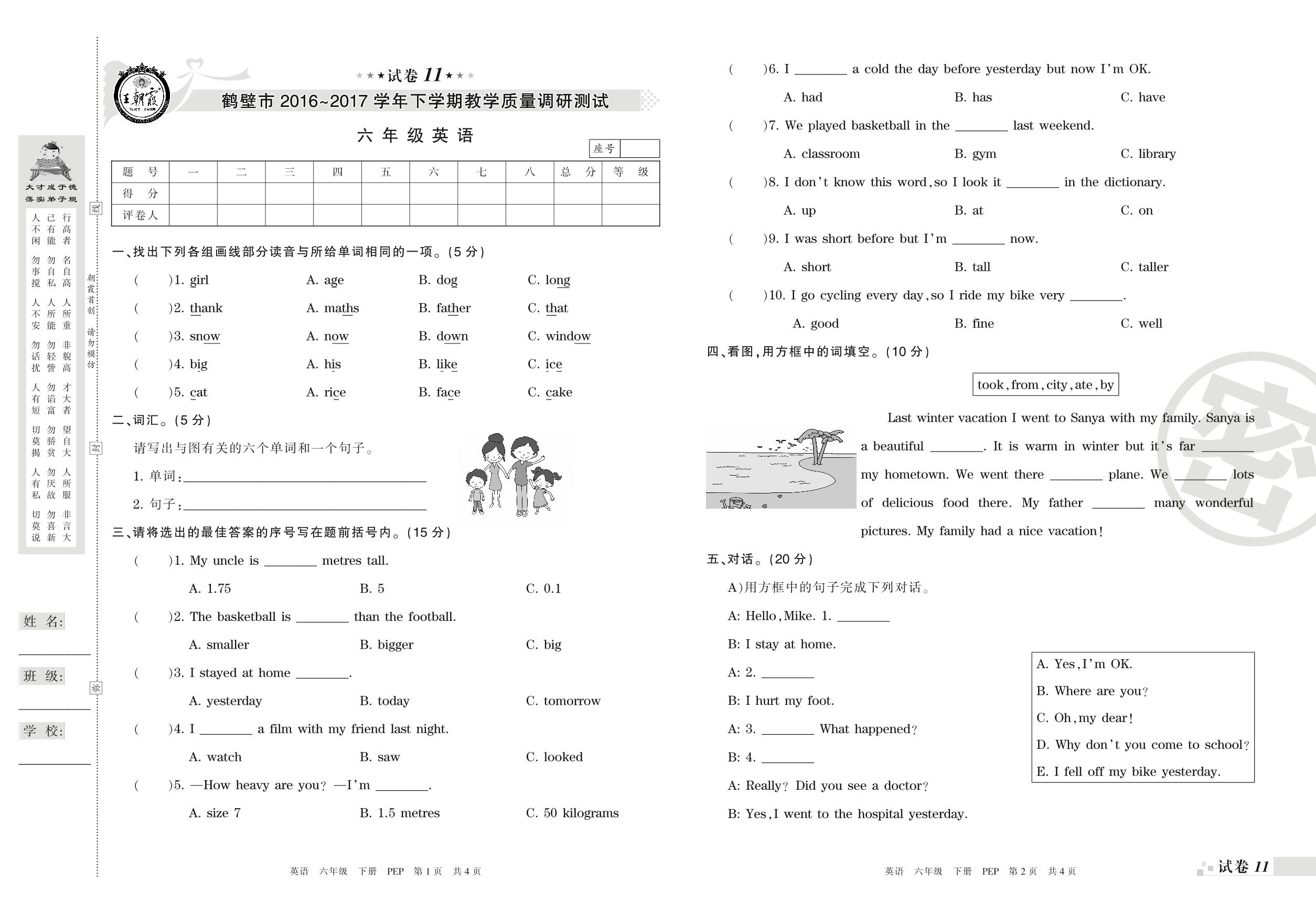 2016-2017学年第二学期鹤壁市六年级英语试卷(PEP版)【11】