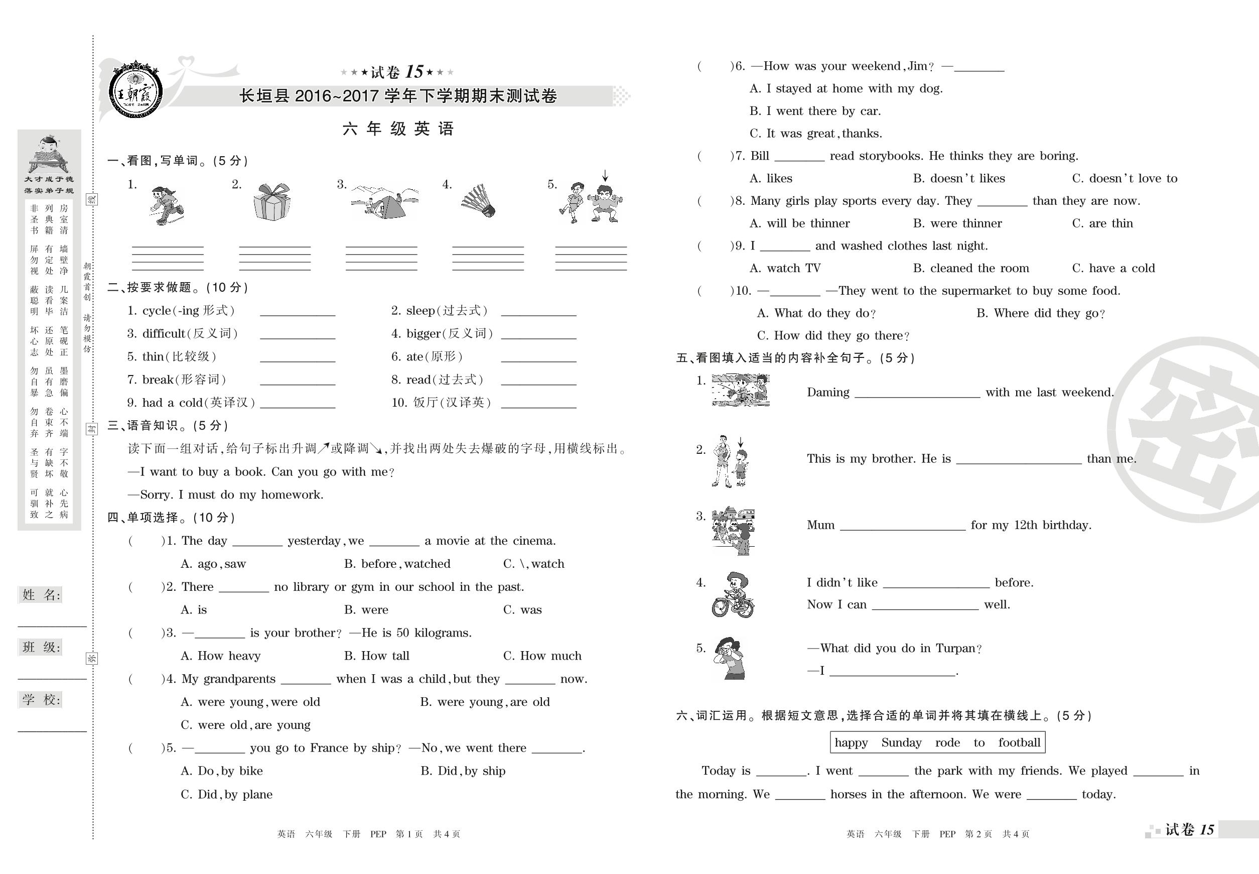 2016-2017学年第二学期新乡市长垣县六年级英语试卷(PEP版)【15】