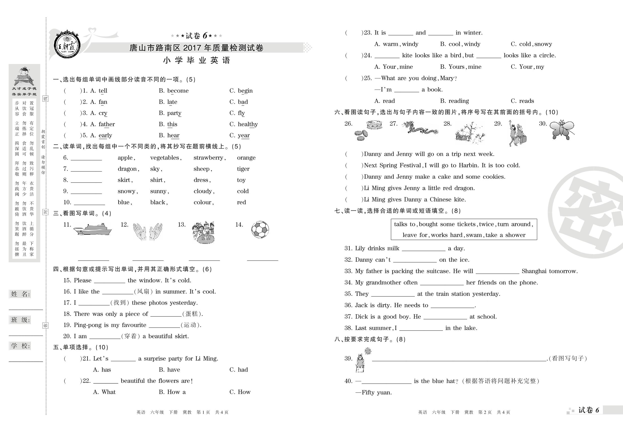 2016-2017学年第二学期唐山市路南区六年级英语试卷(冀教版)【6】