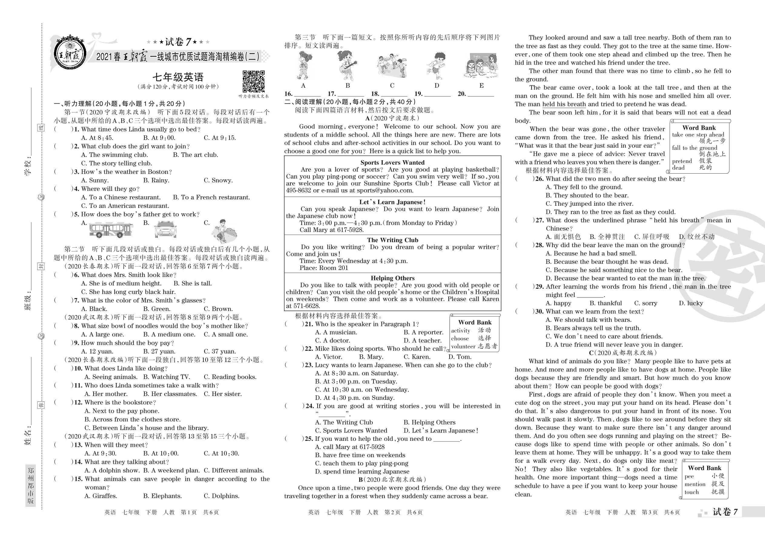 王朝霞海淘期末精编卷七年级下册英语(人教版)_R210807180143【7】