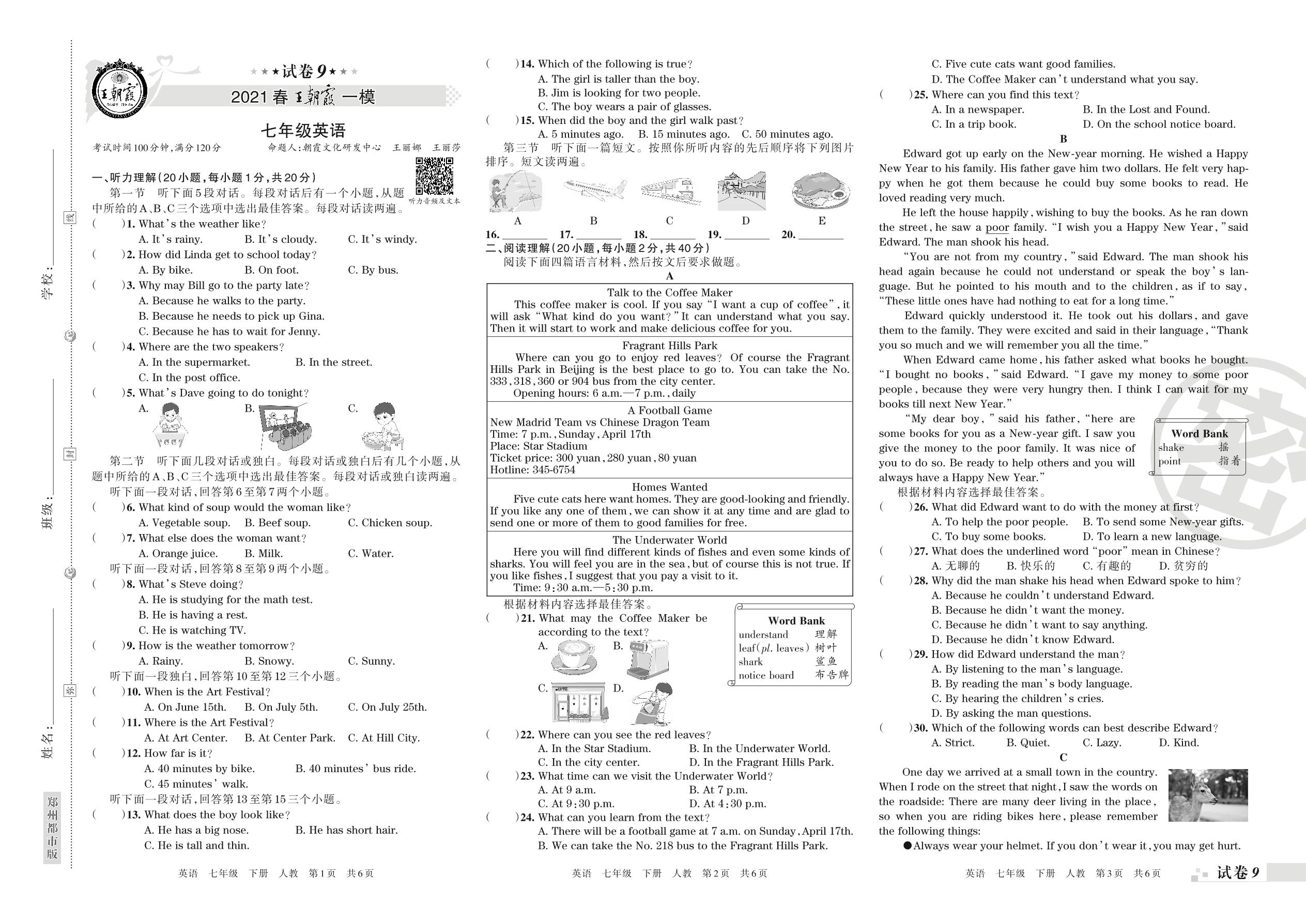 王朝霞期末模拟卷七年级下册英语(人教版)_R210807180213【9】