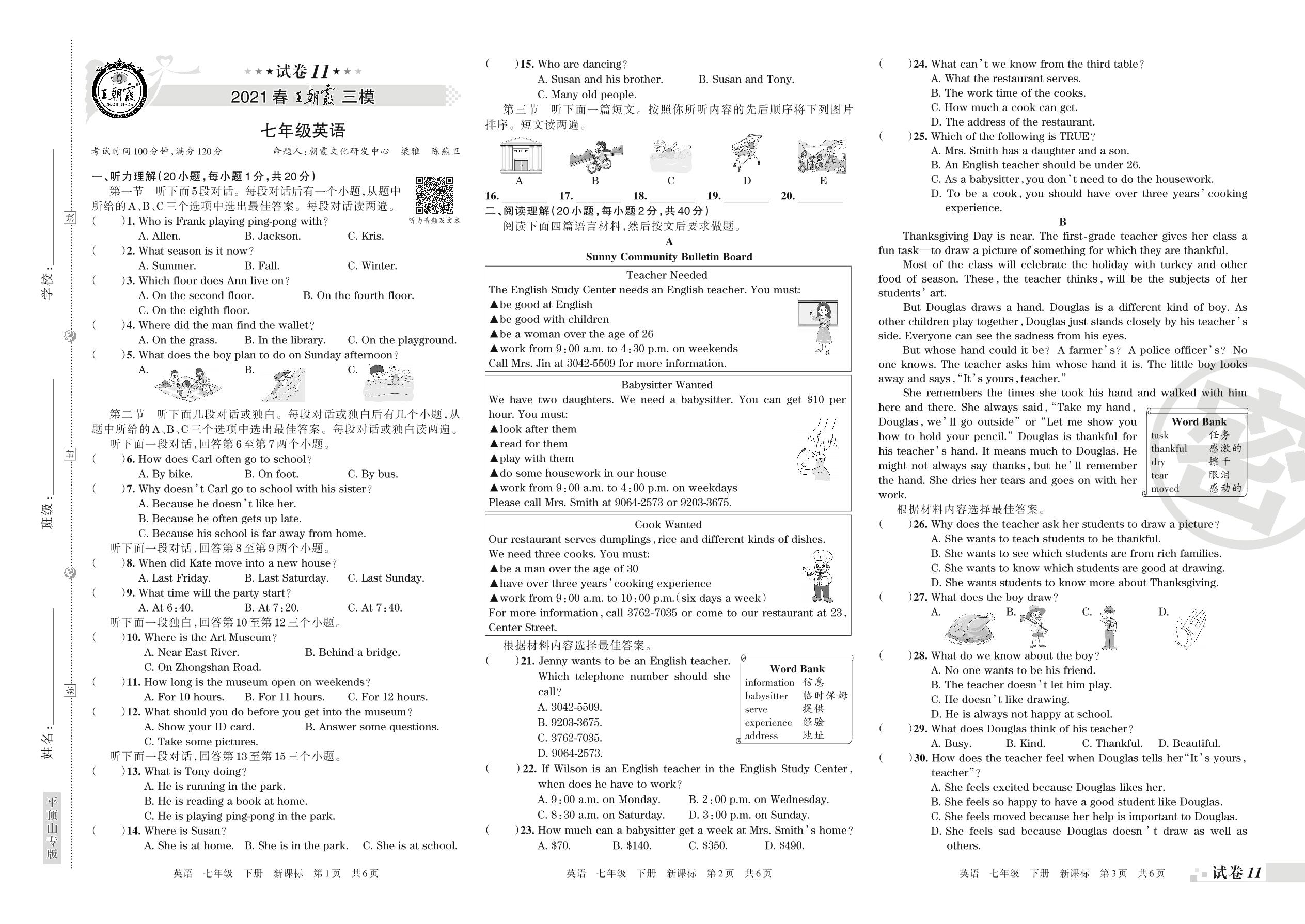 王朝霞期末模拟卷七年级下册英语(新课版)_R210807180952【11】
