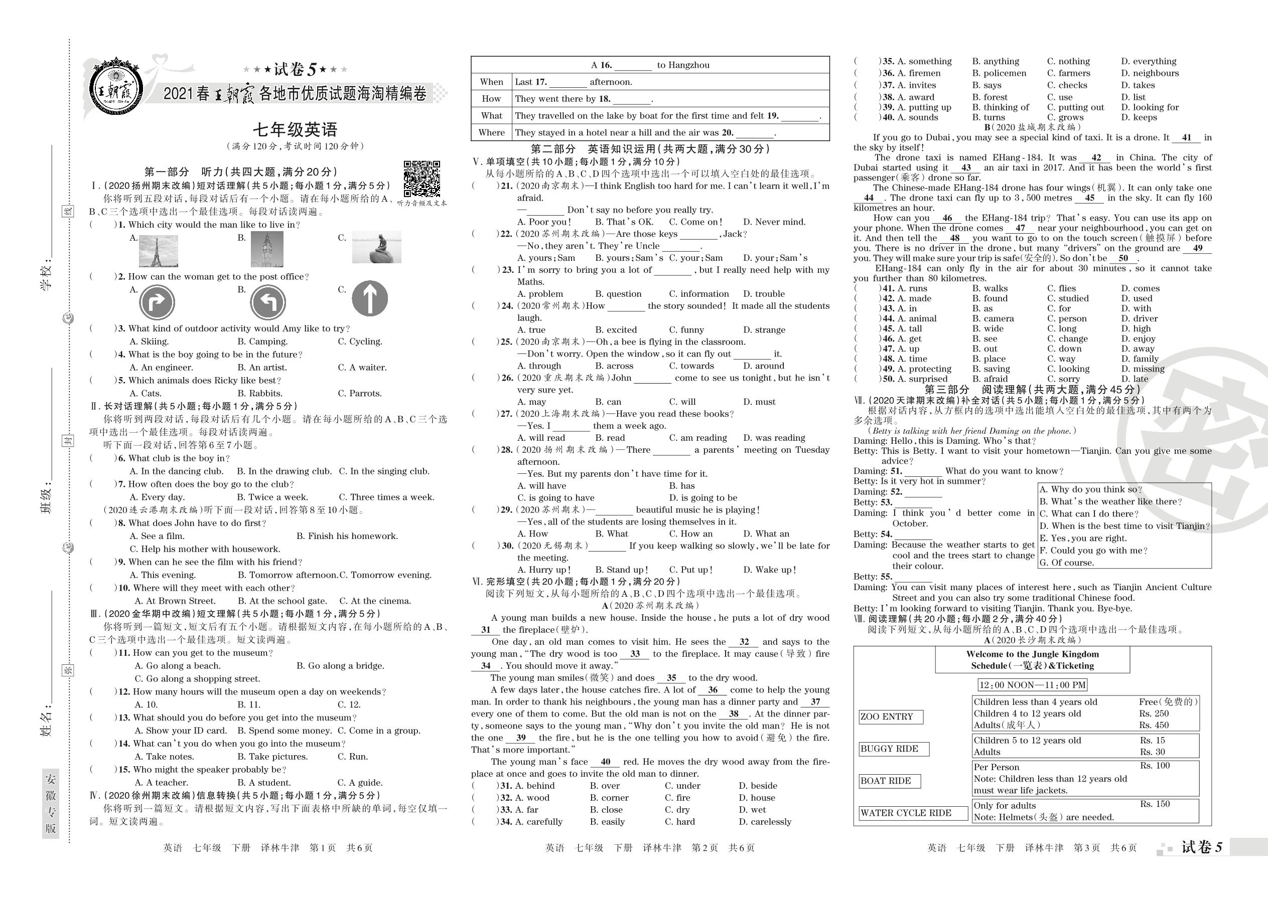 七年级英语译林版(译林牛津版)下册期末卷