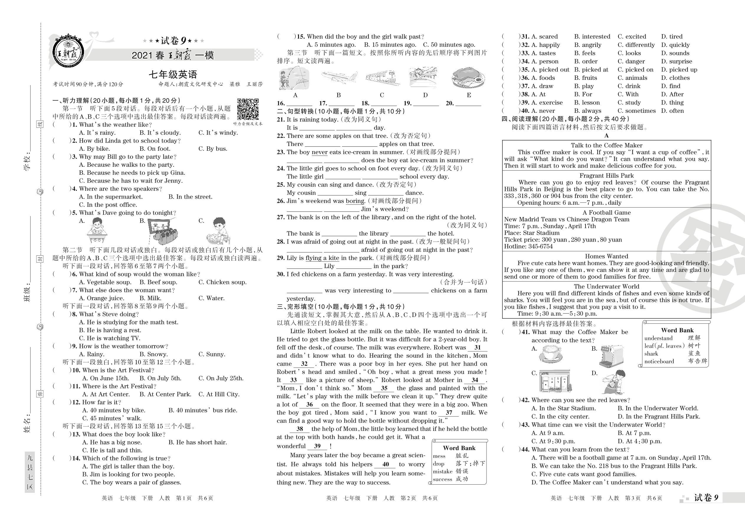 王朝霞期末模拟卷七年级下册英语(人教版)_R210807181403【9】