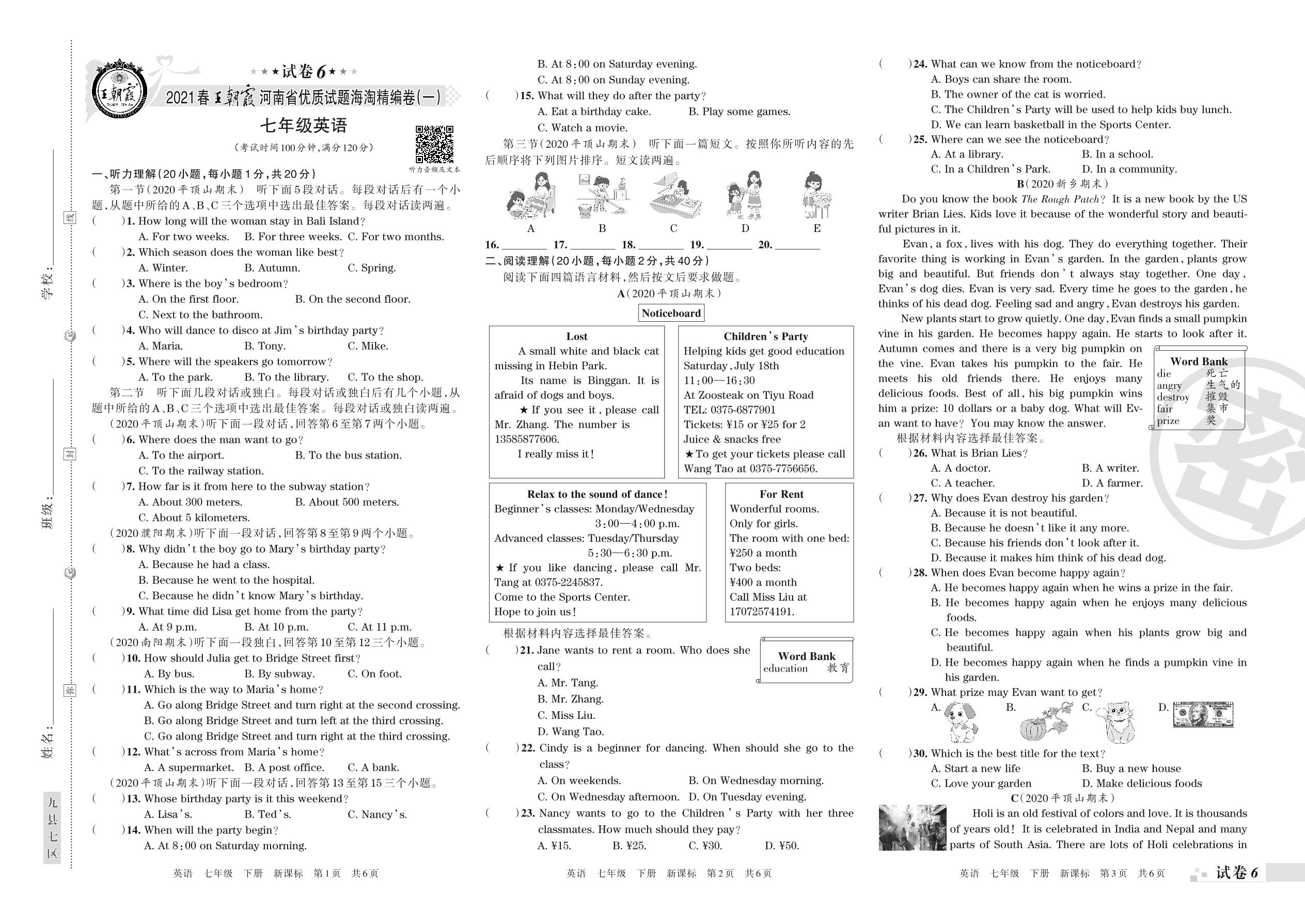 王朝霞海淘期末精编卷七年级下册英语(新课版)_R210807181553【6】