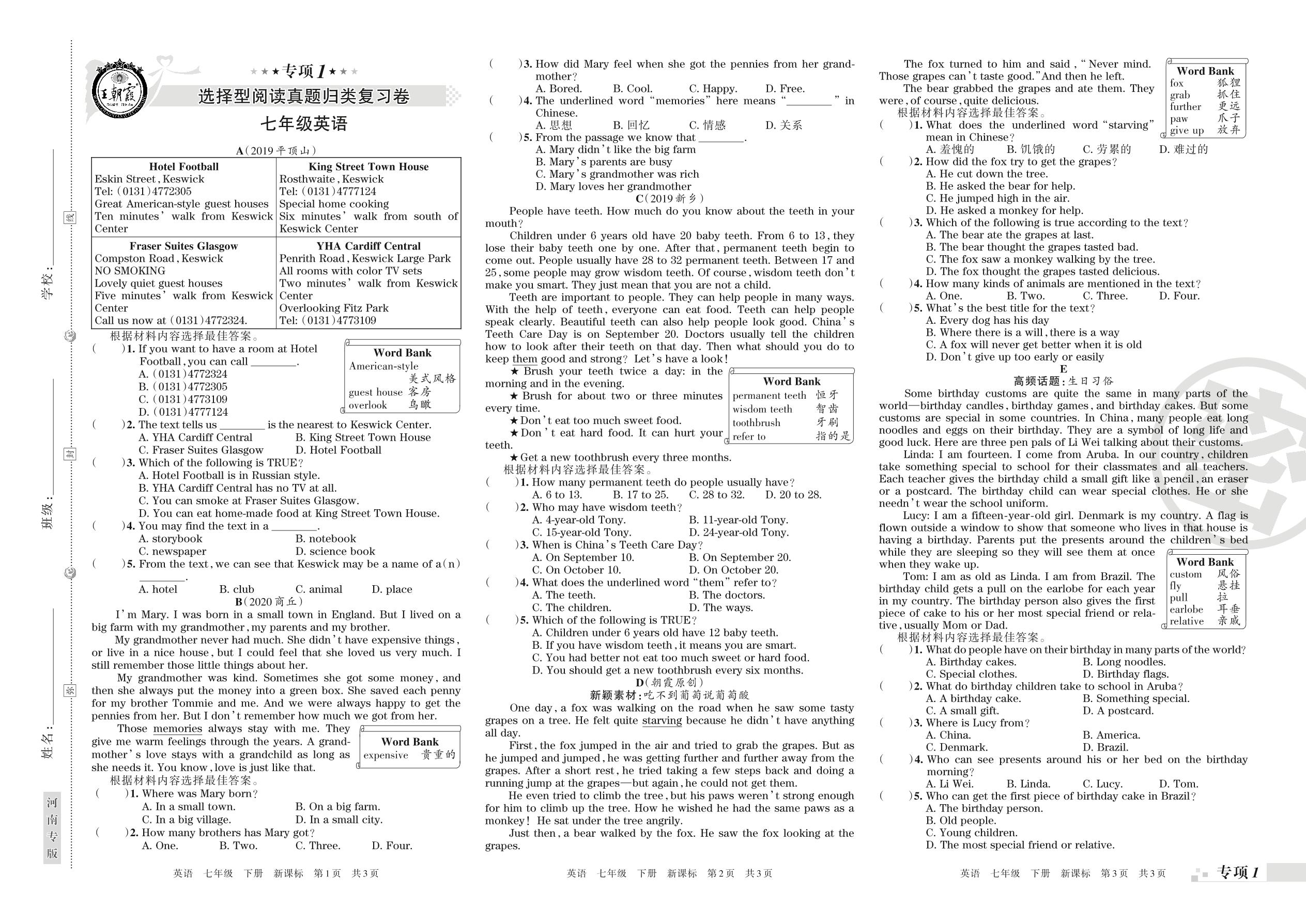 王朝霞期末专项卷——选择型阅读、任务型阅读真题归类复习七年级下册英语(新课版)_R210807182652【0】