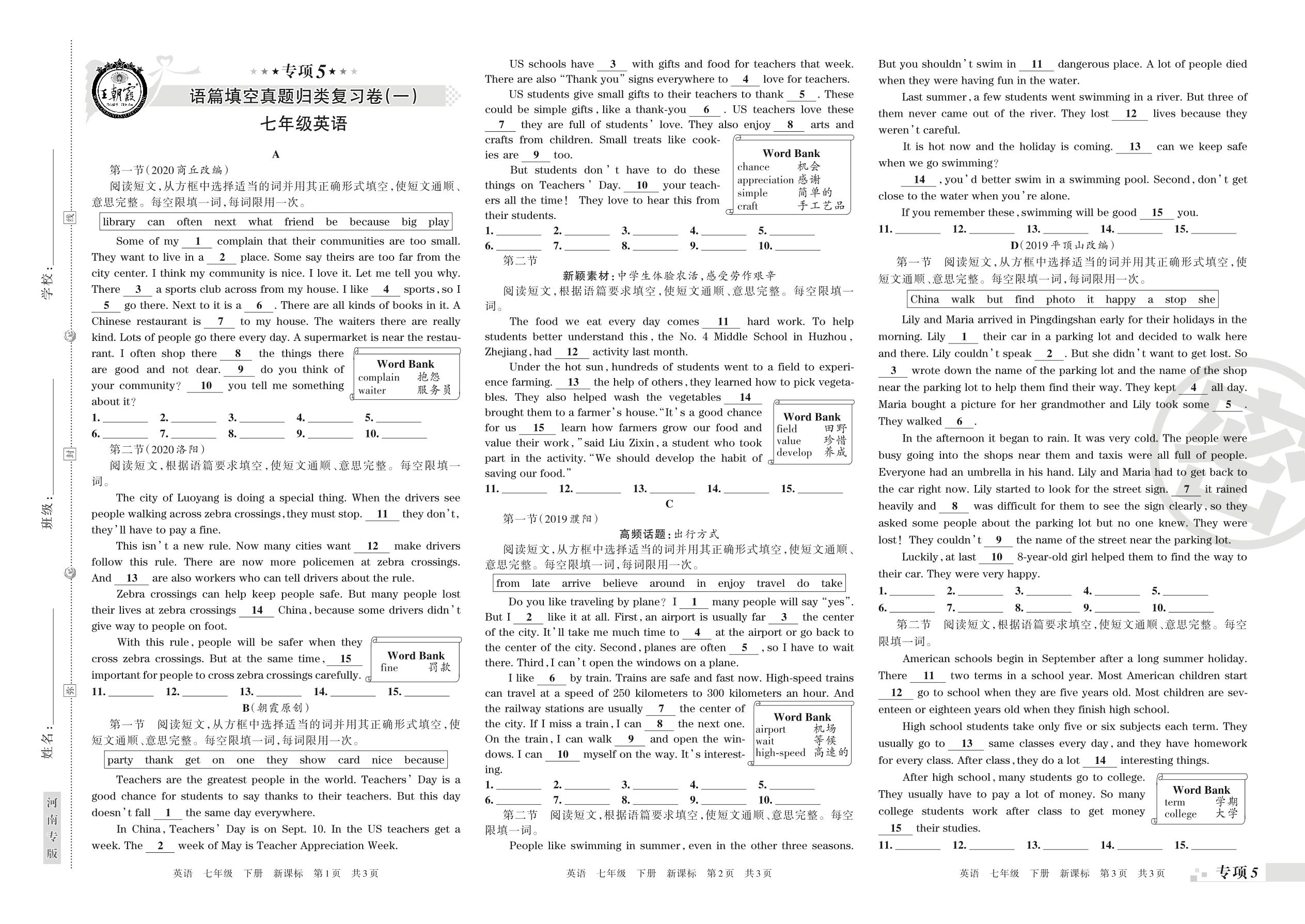 王朝霞期末专项卷——语篇填空(一)、(二)真题归类复习七年级下册英语(新课版)_R210807182709【0】