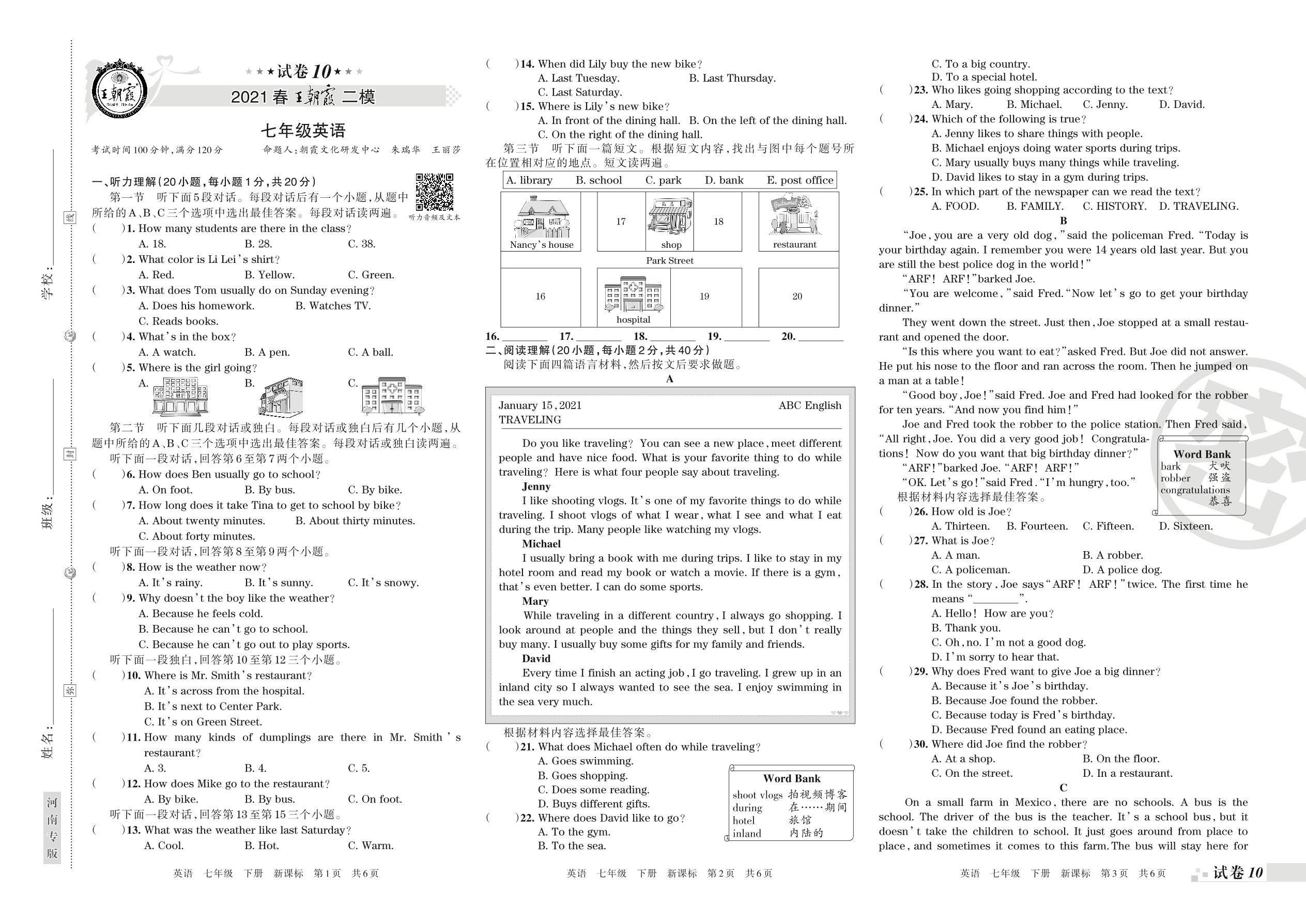 王朝霞期末模拟卷七年级下册英语(新课版)_R210807182850【10】