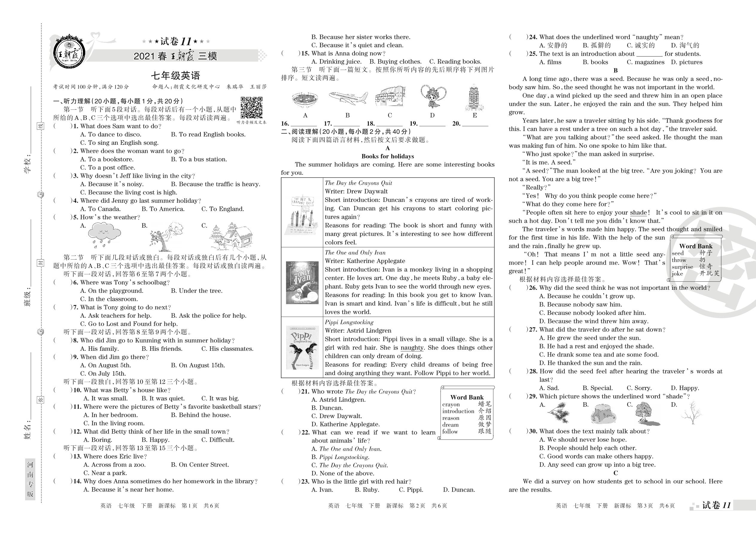王朝霞期末模拟卷七年级下册英语(新课版)_R210807182901【11】
