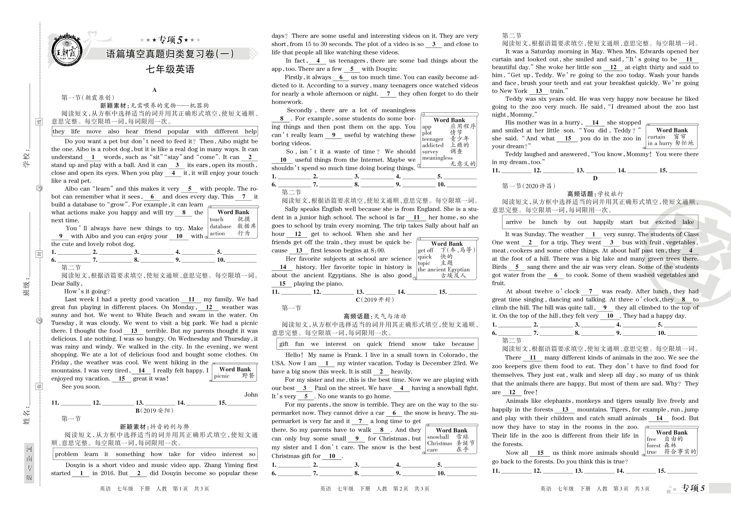 王朝霞期末专项卷——语篇填空(一)、(二)真题归类复习七年级下册英语(人教版)_R210807182929【0】