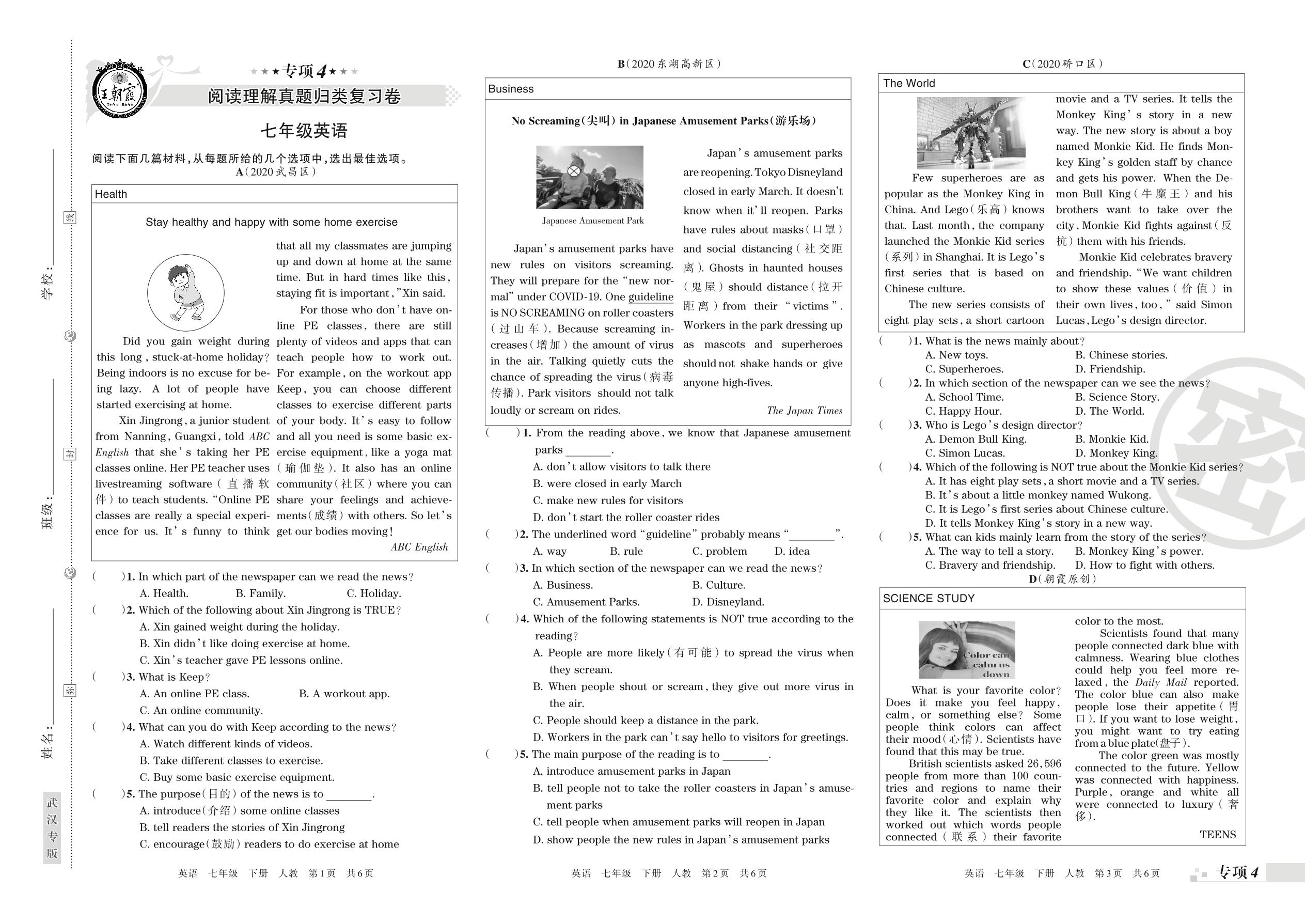 王朝霞期末专项卷——阅读理解真题归类复习七年级下册英语(人教版)【0】