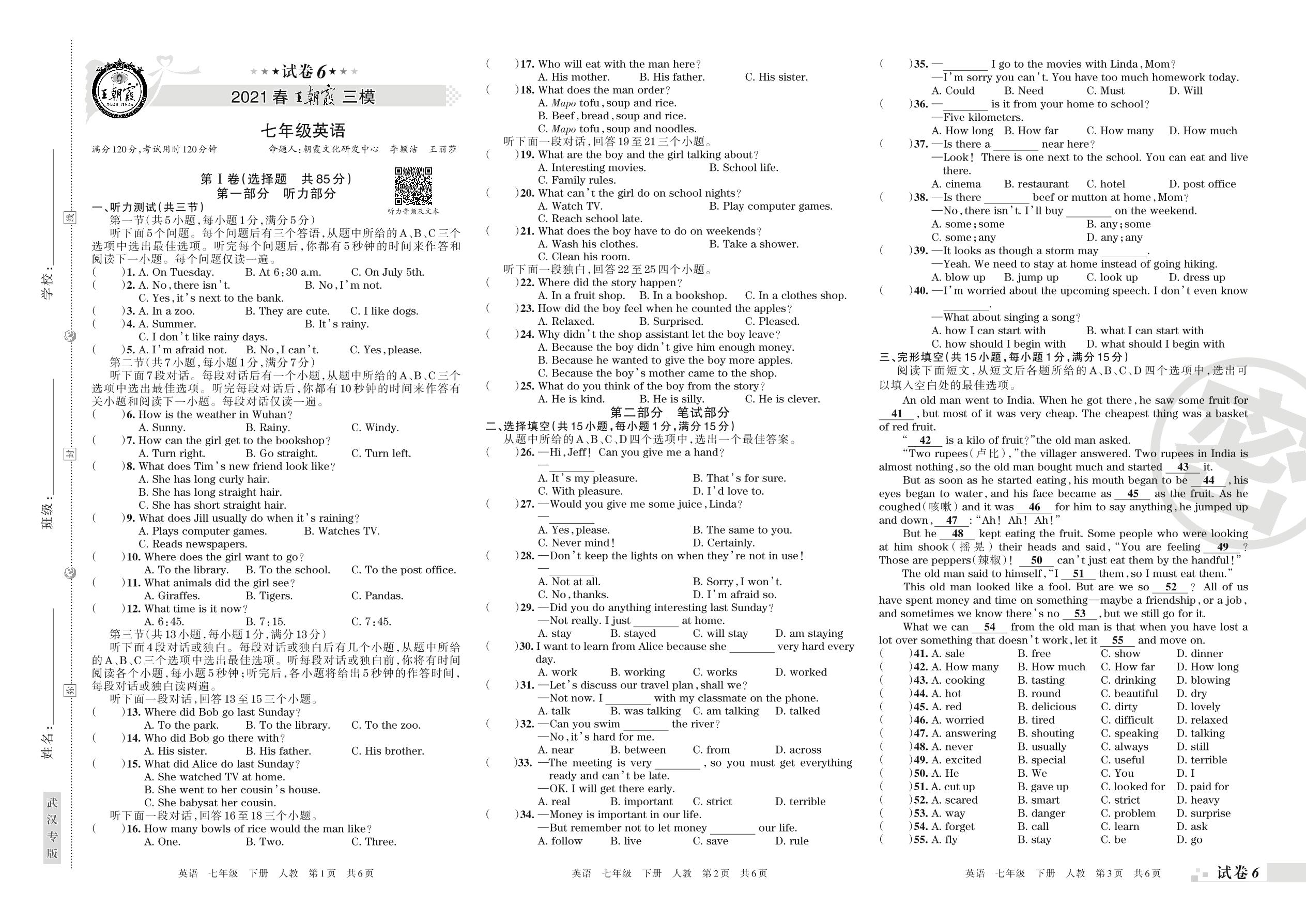 王朝霞期末模拟卷七年级下册英语(人教版)_R210807183615【6】