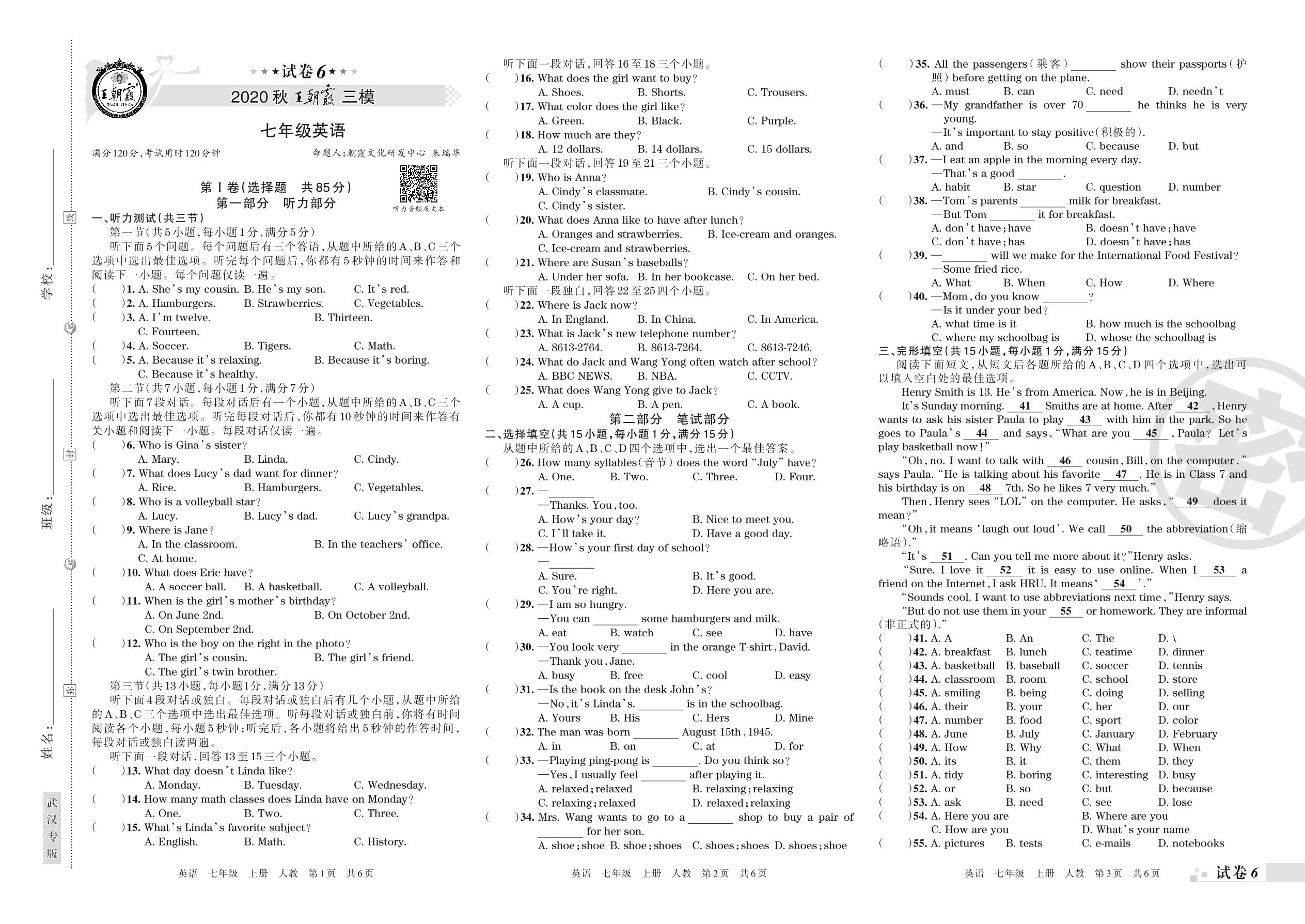 王朝霞期末模拟卷七年级上册英语(人教版)_R210807183751【6】